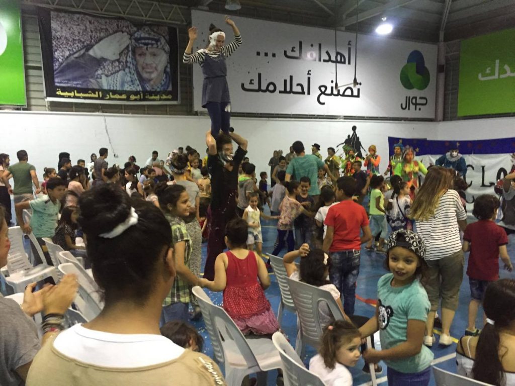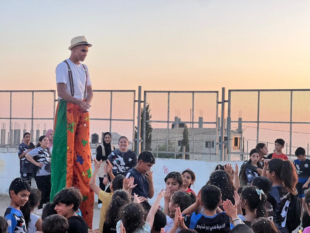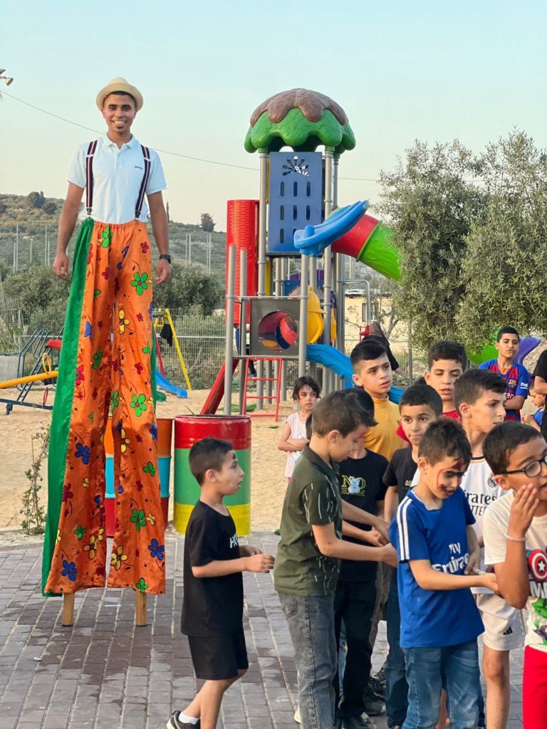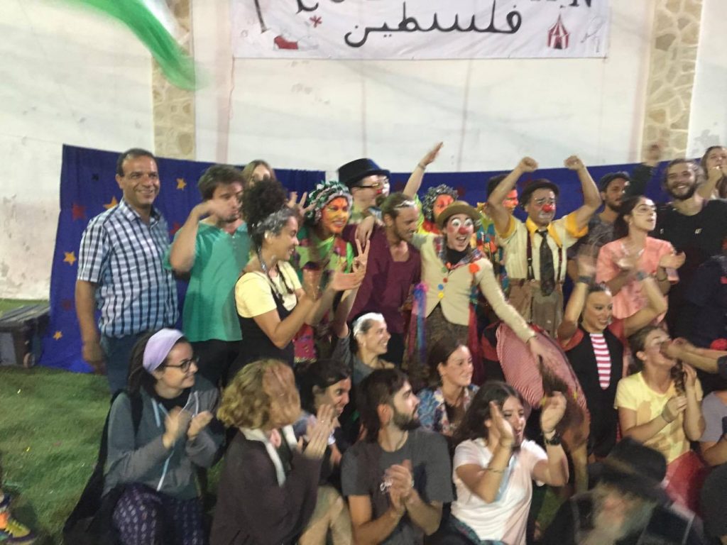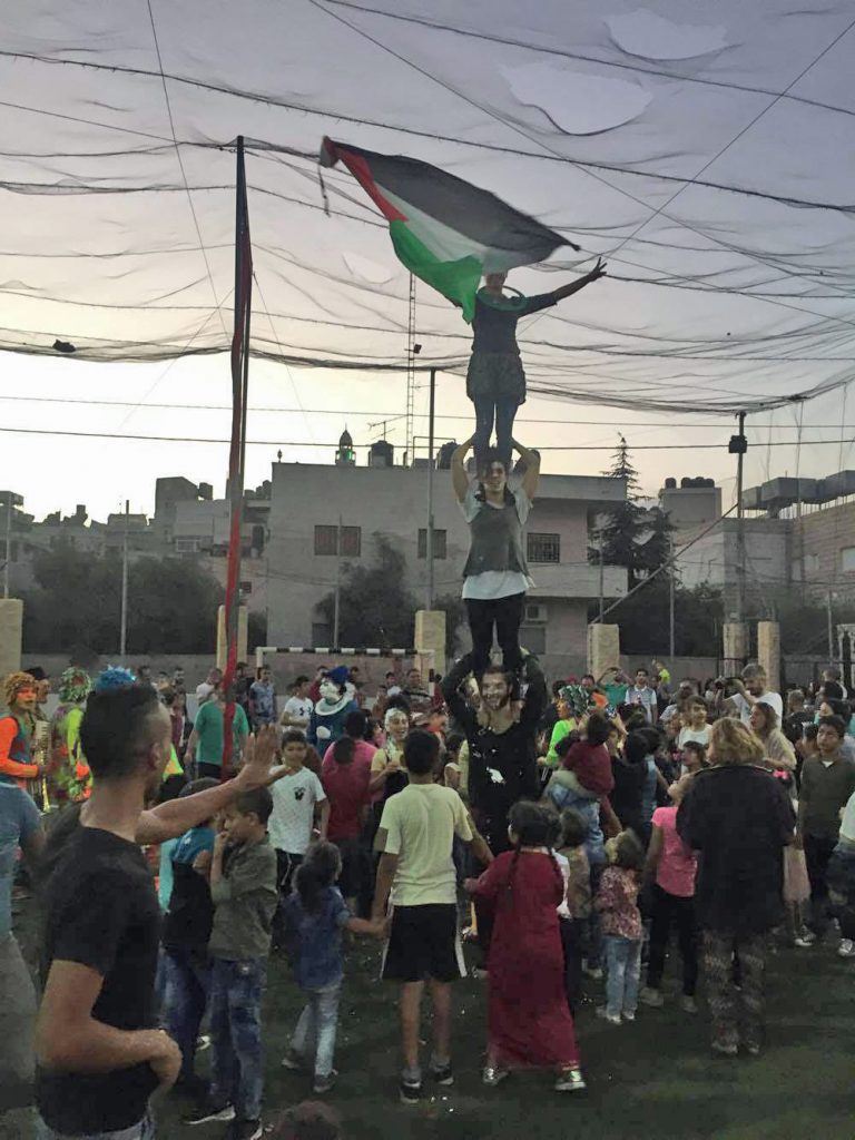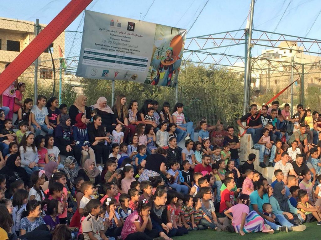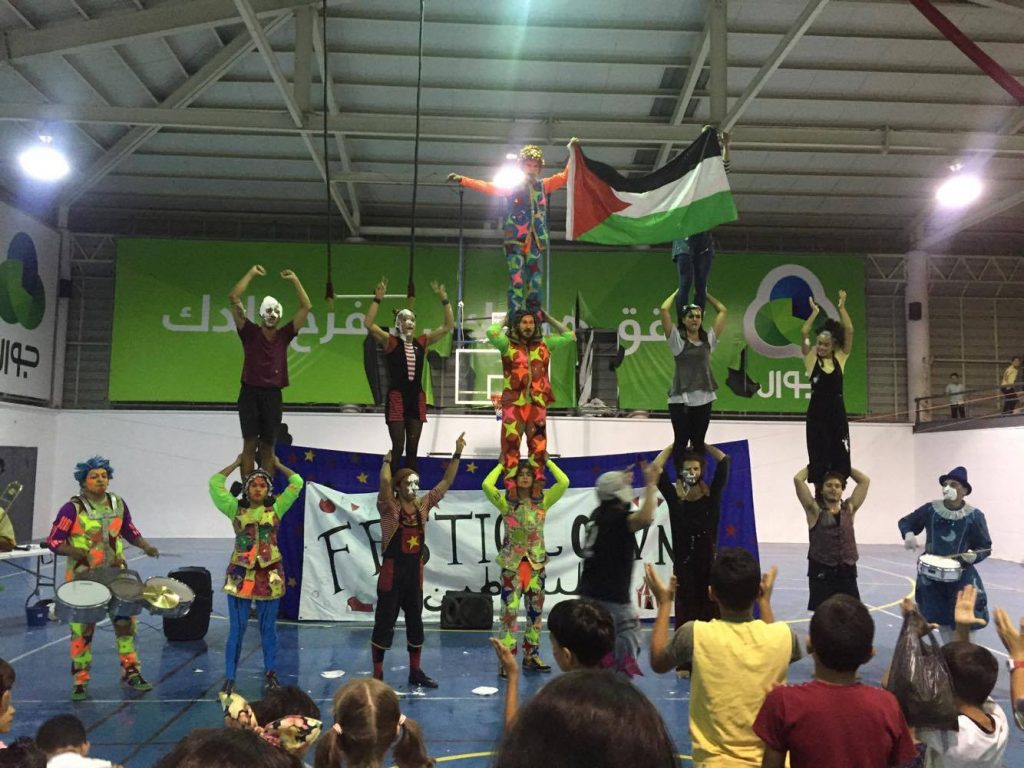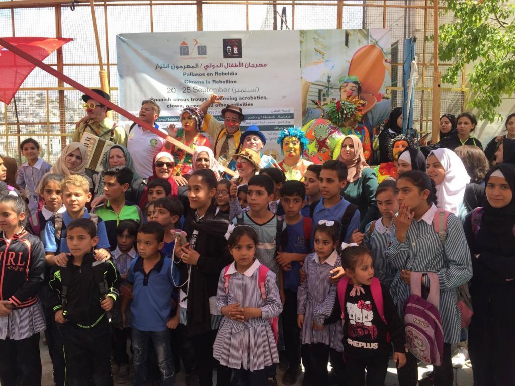 Playgrounds for Palestine teamed up with Pallasos en Rebeldía (Clowns in Rebellion), who volunteered through Lajee Center, to send them across the West Bank portion of Palestine to host day long events and acrobatics workshops for local children at our playgrounds.