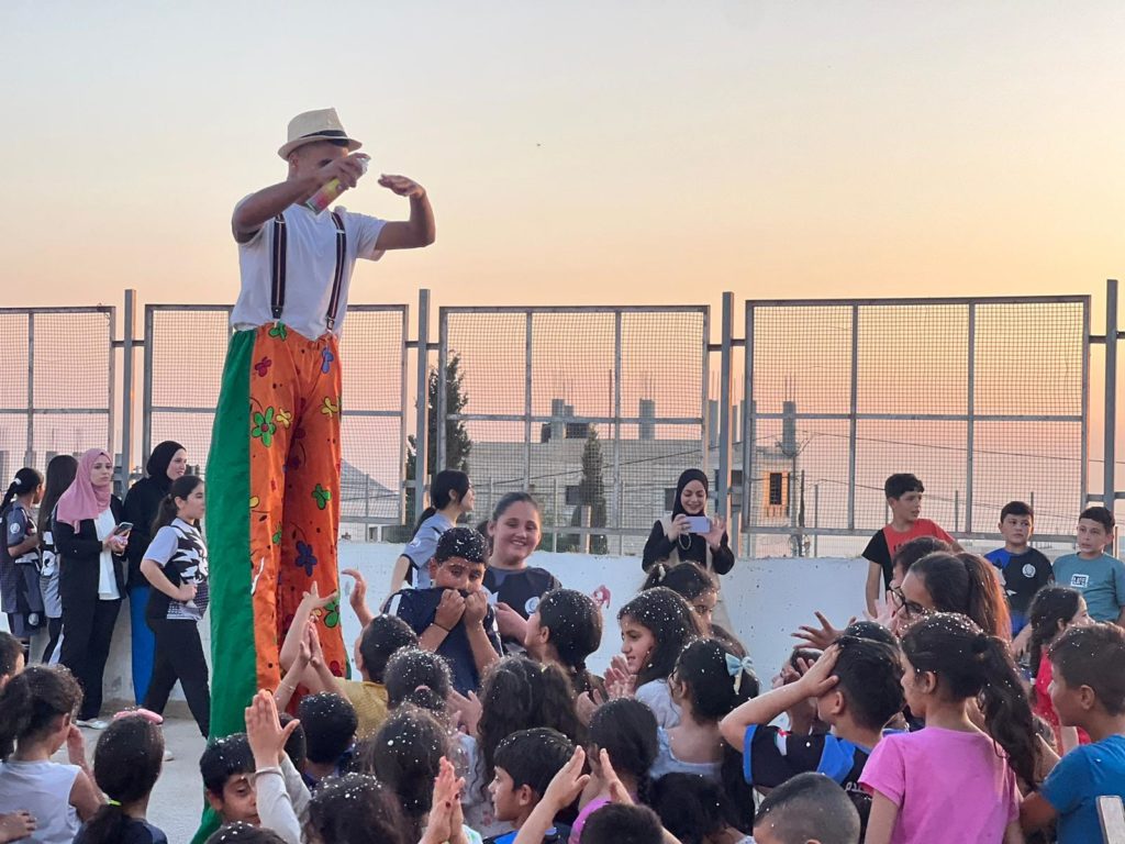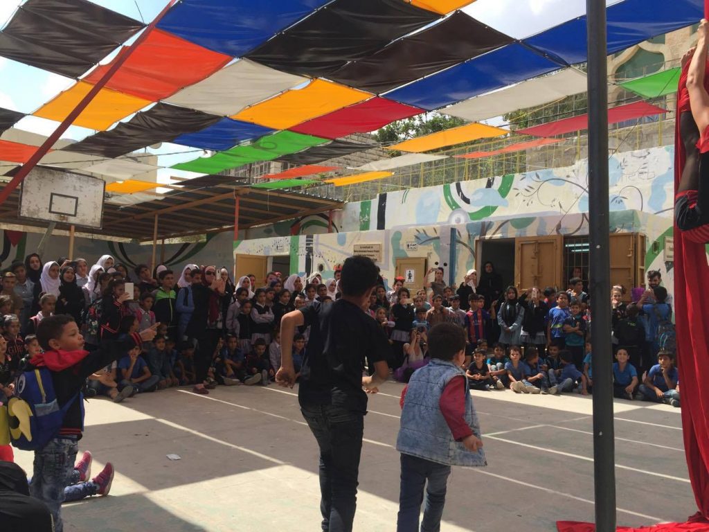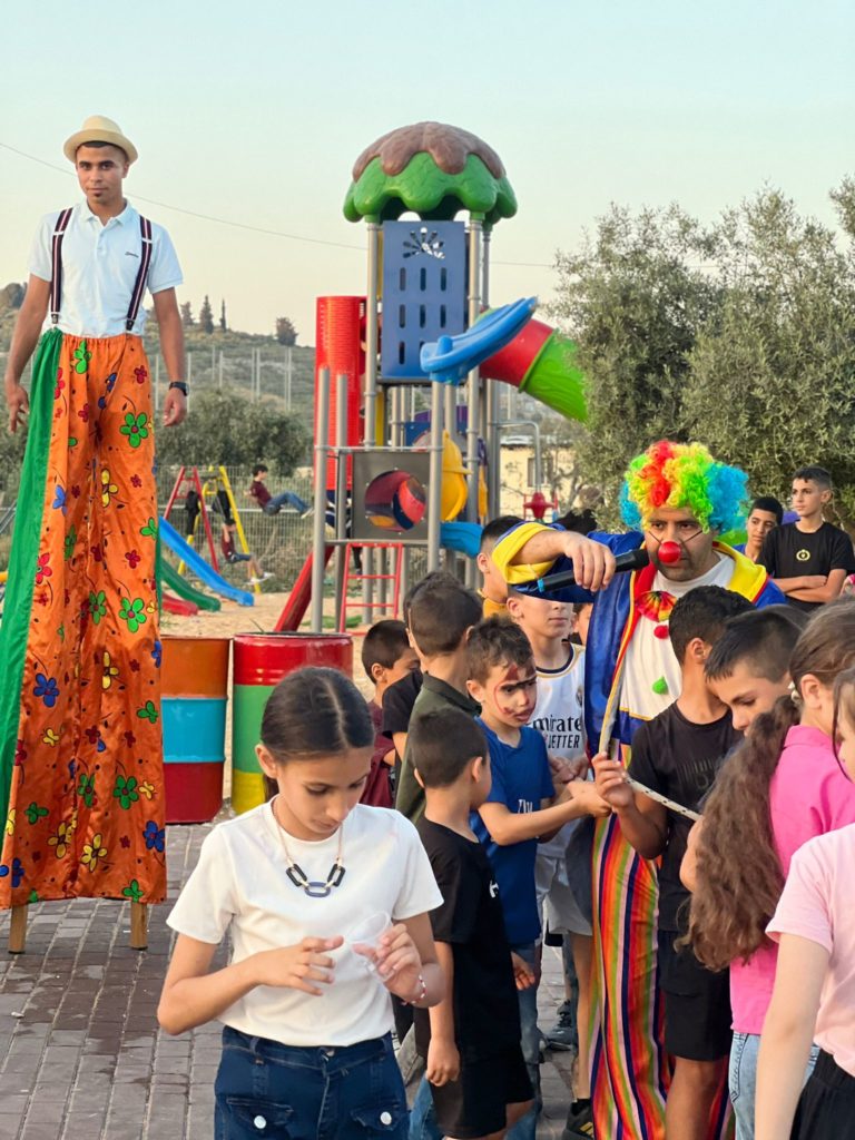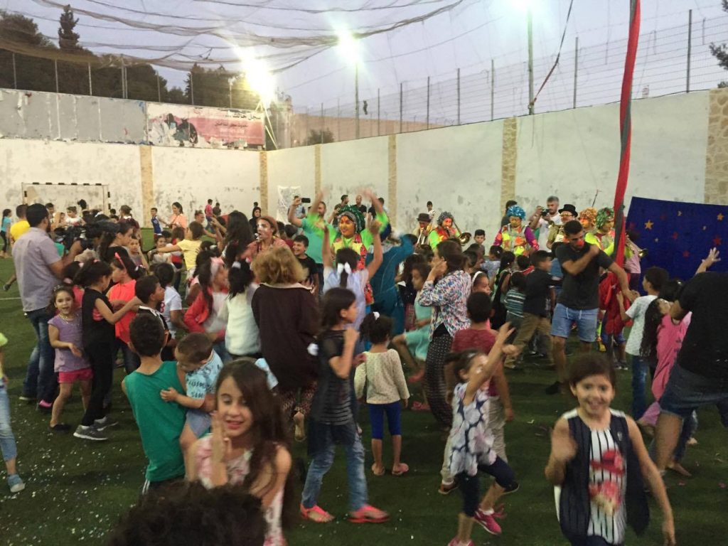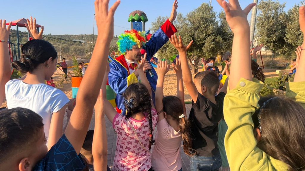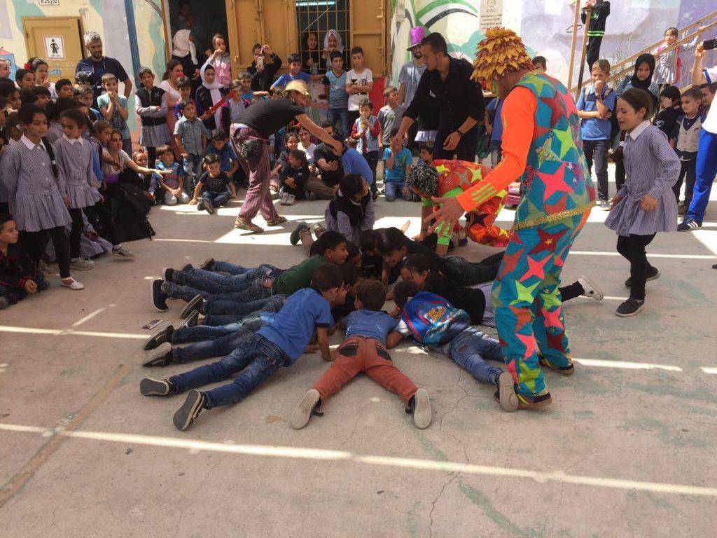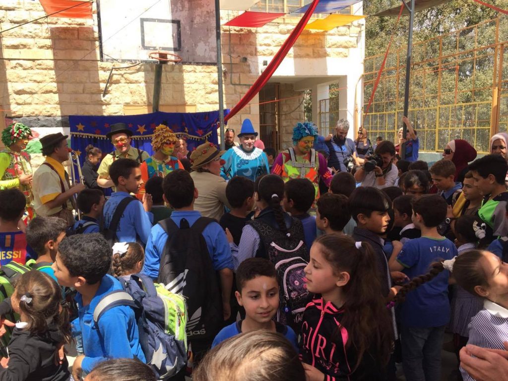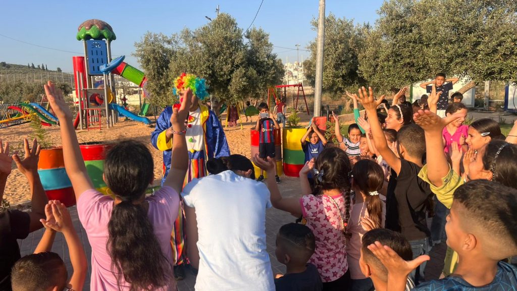 Playgrounds for Palestine teamed up with Pallasos en Rebeldía (Clowns in Rebellion), who volunteered through Lajee Center, to send them across the West Bank portion of Palestine to host day long events and acrobatics workshops for local children at our playgrounds.