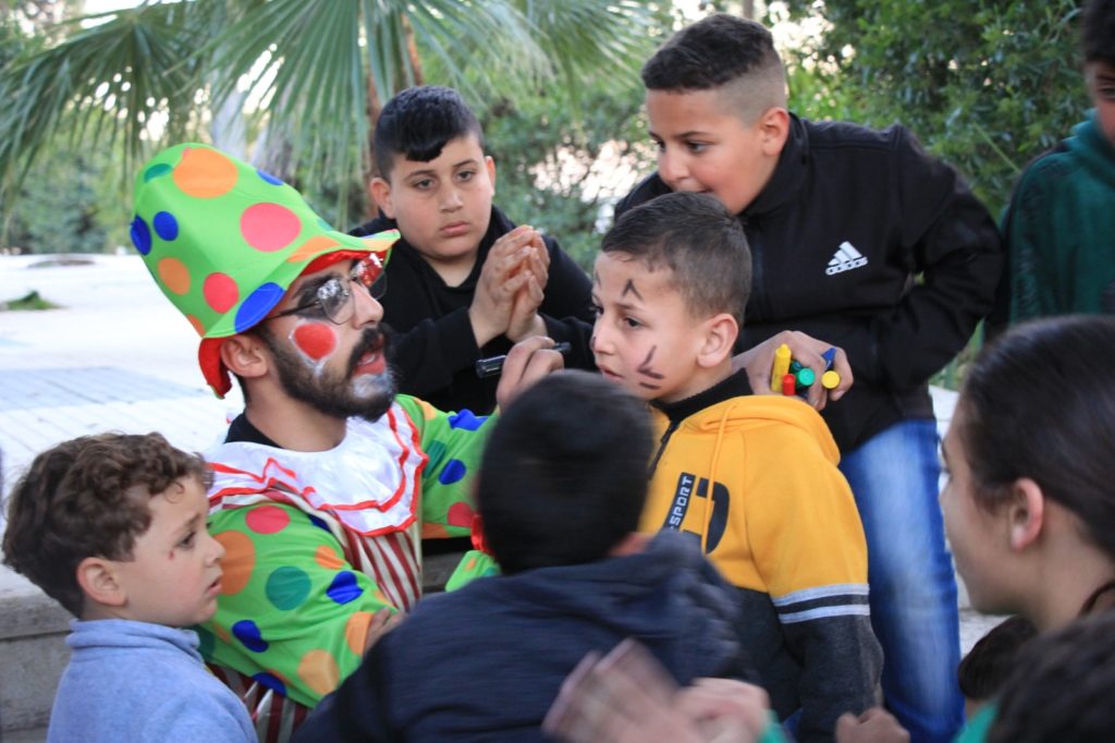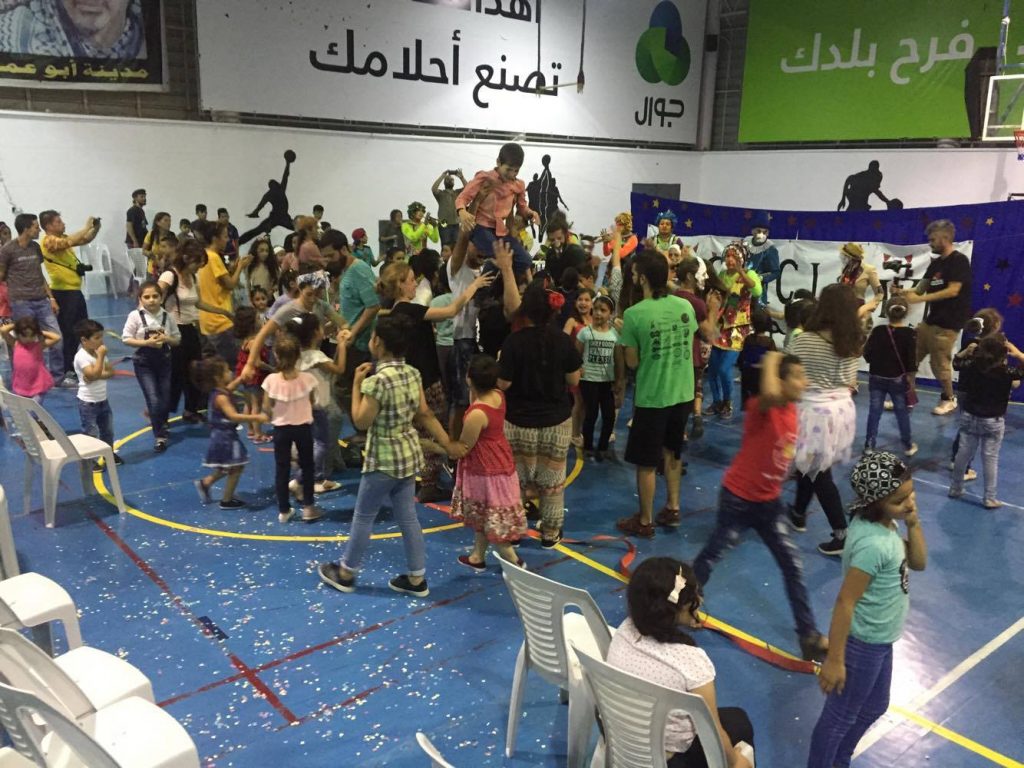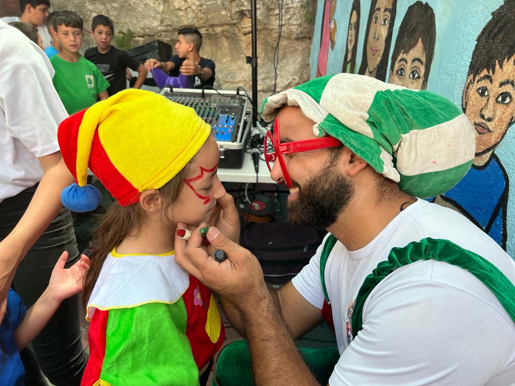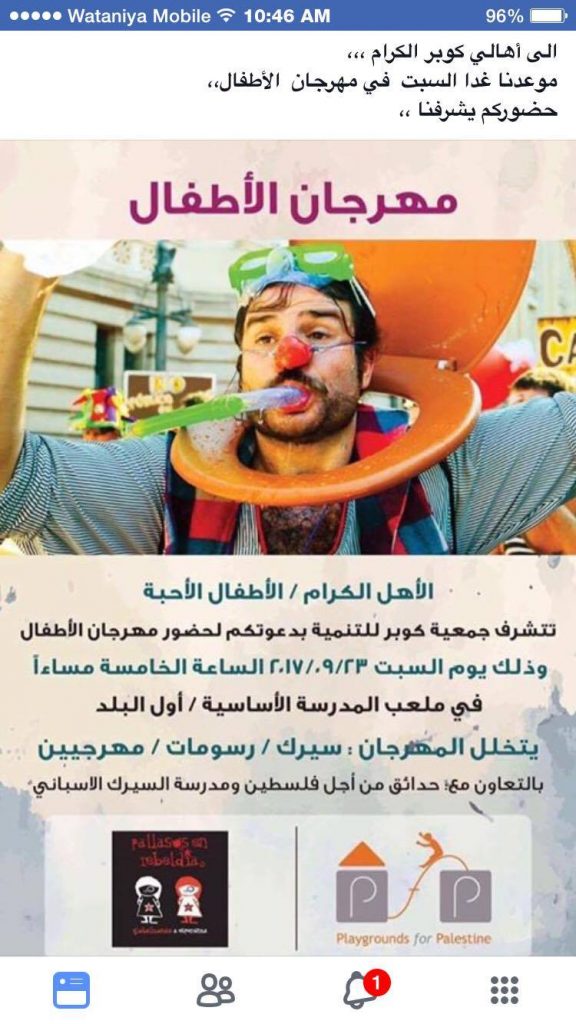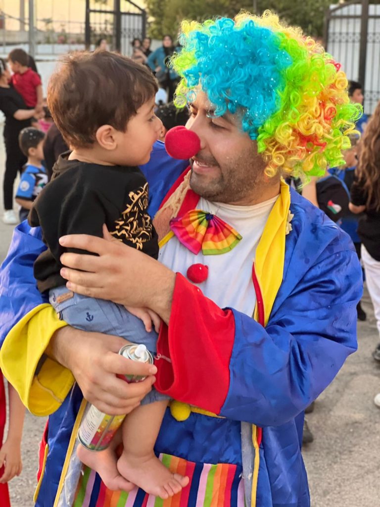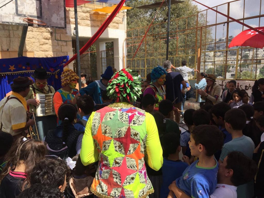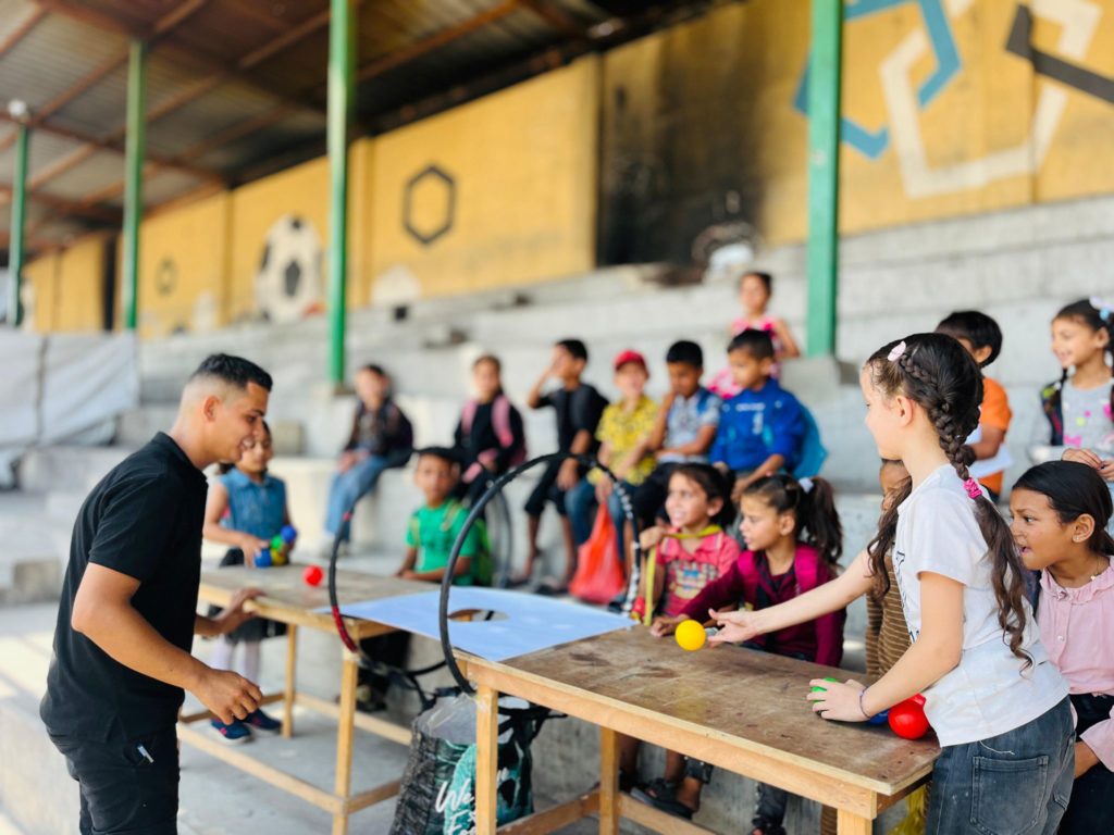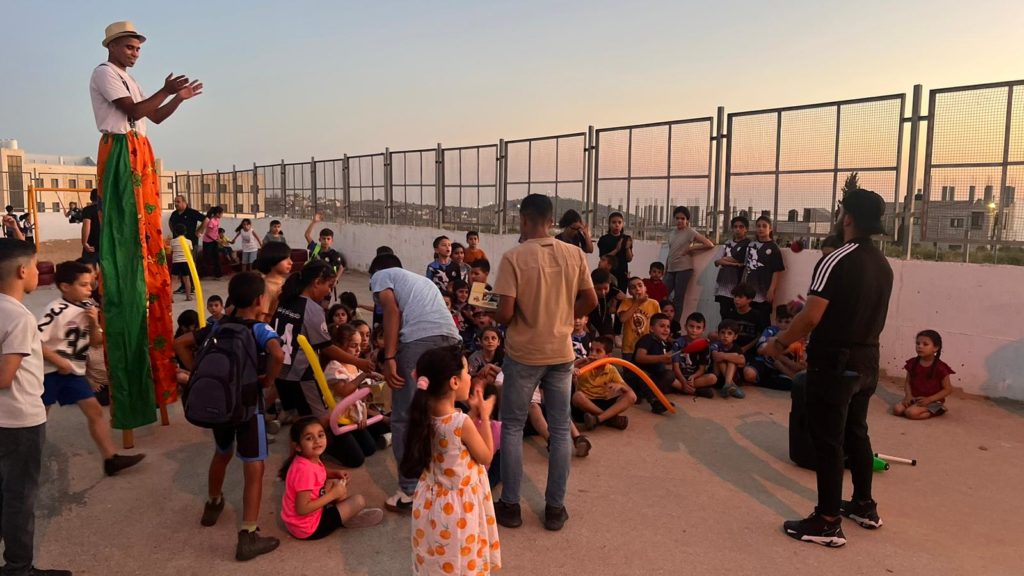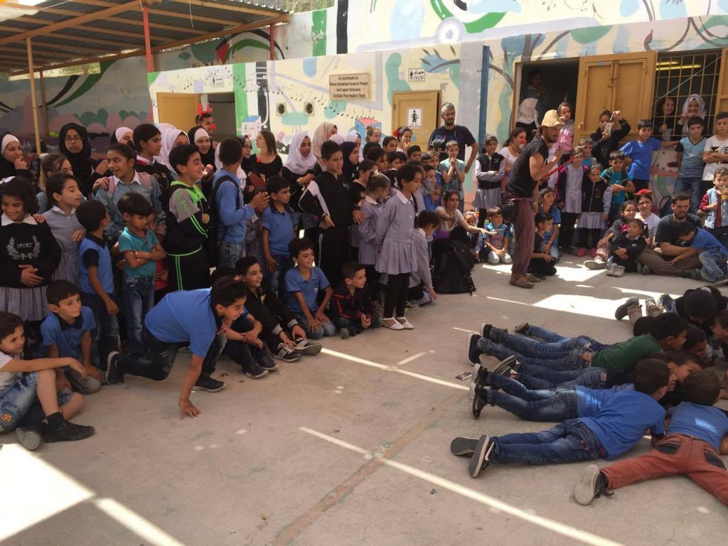 Playgrounds for Palestine teamed up with Pallasos en Rebeldía (Clowns in Rebellion), who volunteered through Lajee Center, to send them across the West Bank portion of Palestine to host day long events and acrobatics workshops for local children at our playgrounds.