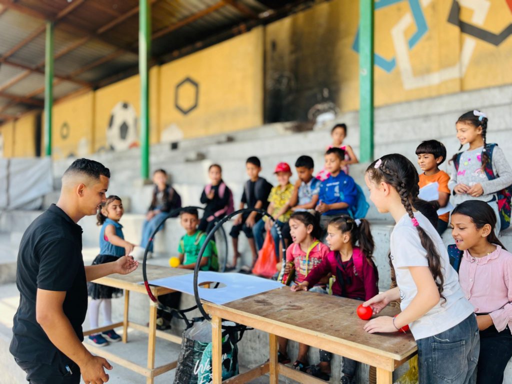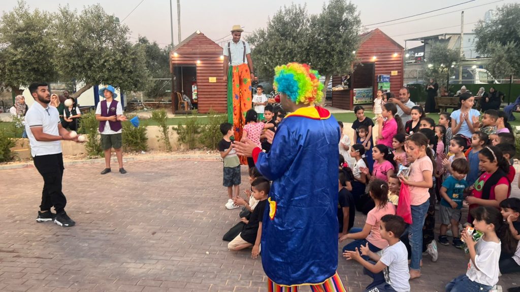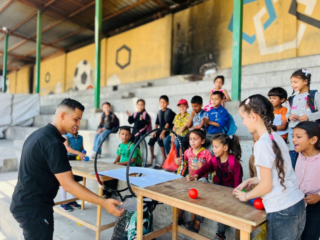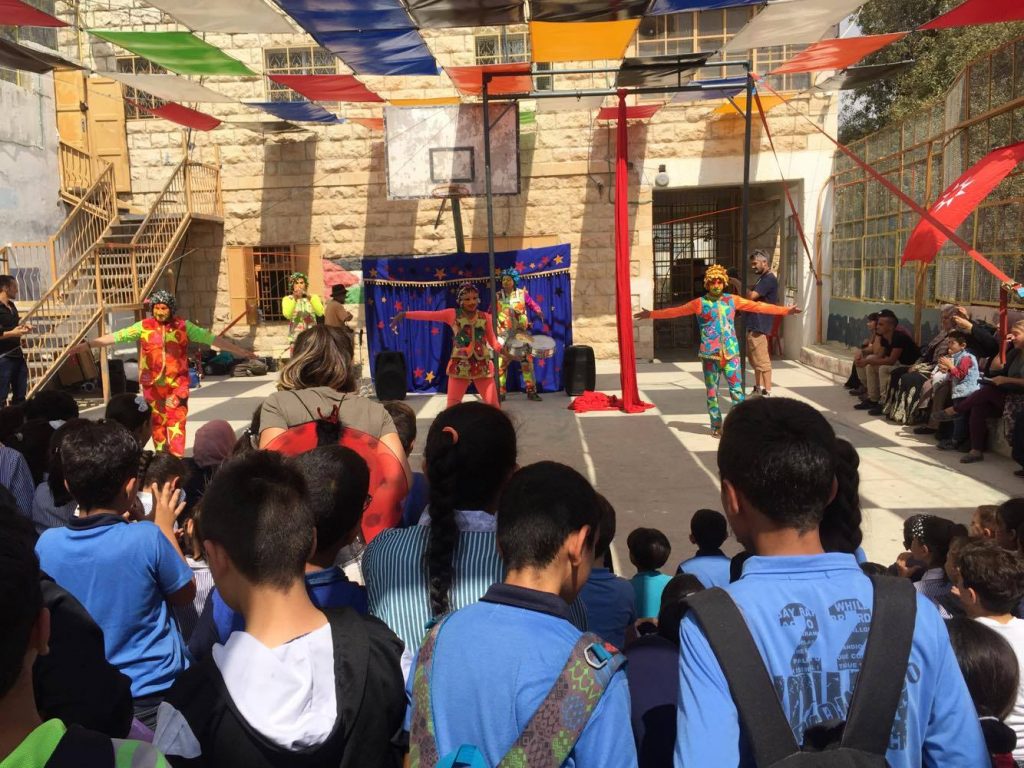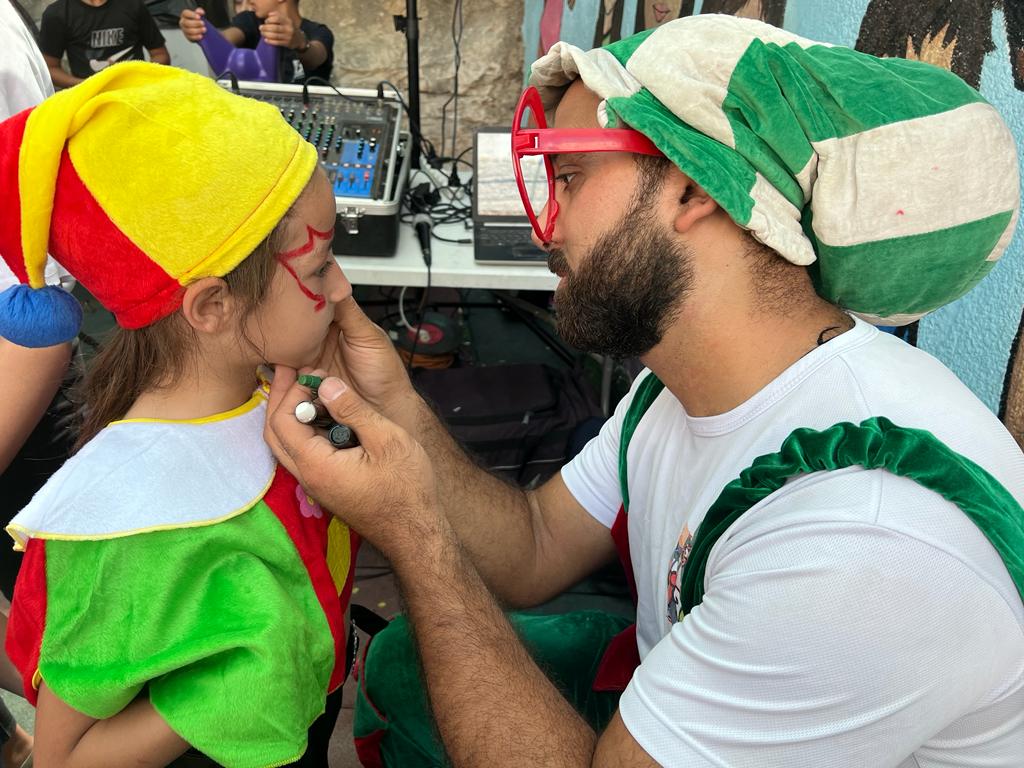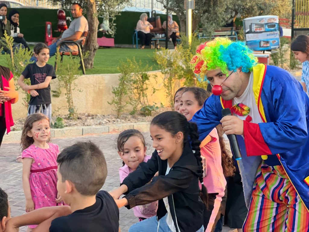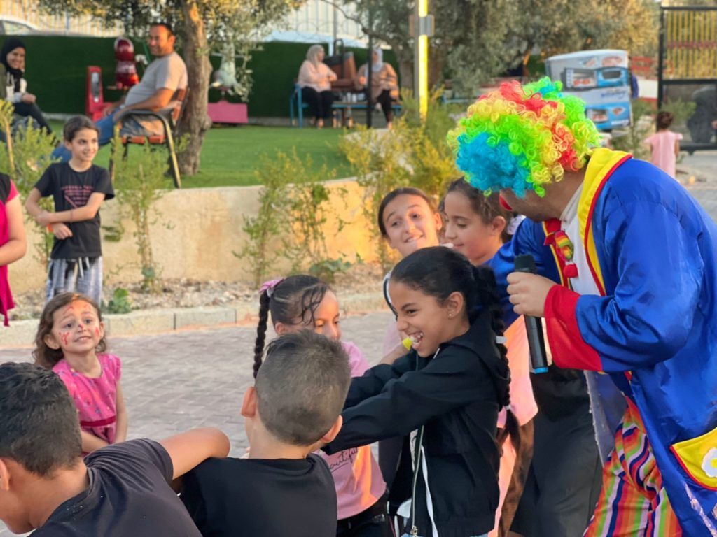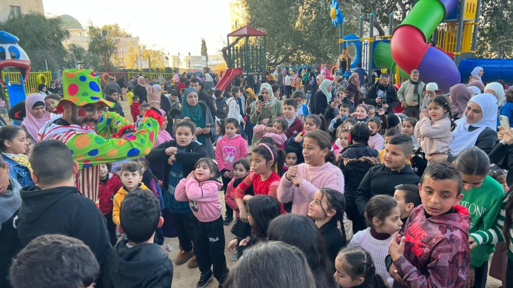 Playgrounds for Palestine teamed up with Pallasos en Rebeldía (Clowns in Rebellion), who volunteered through Lajee Center, to send them across the West Bank portion of Palestine to host day long events and acrobatics workshops for local children at our playgrounds.