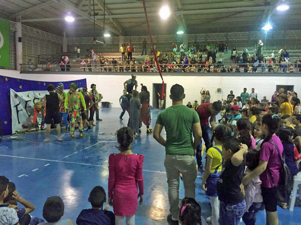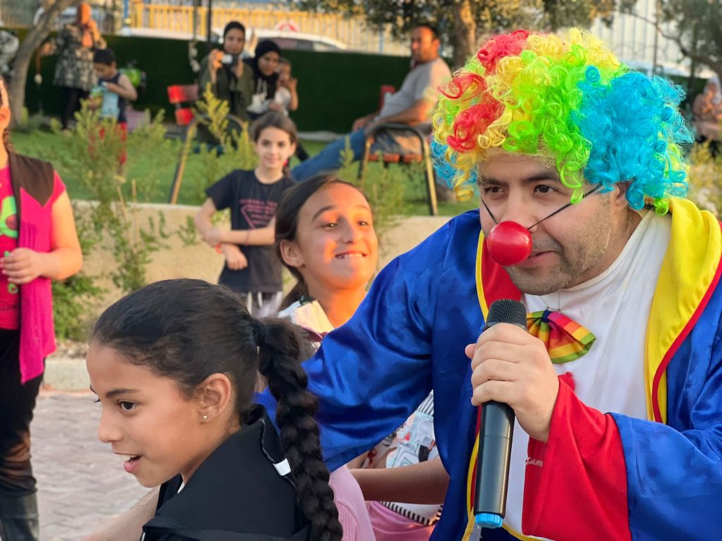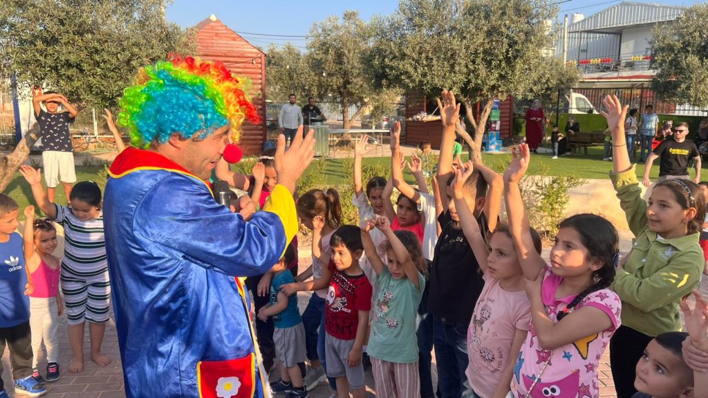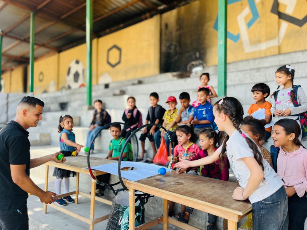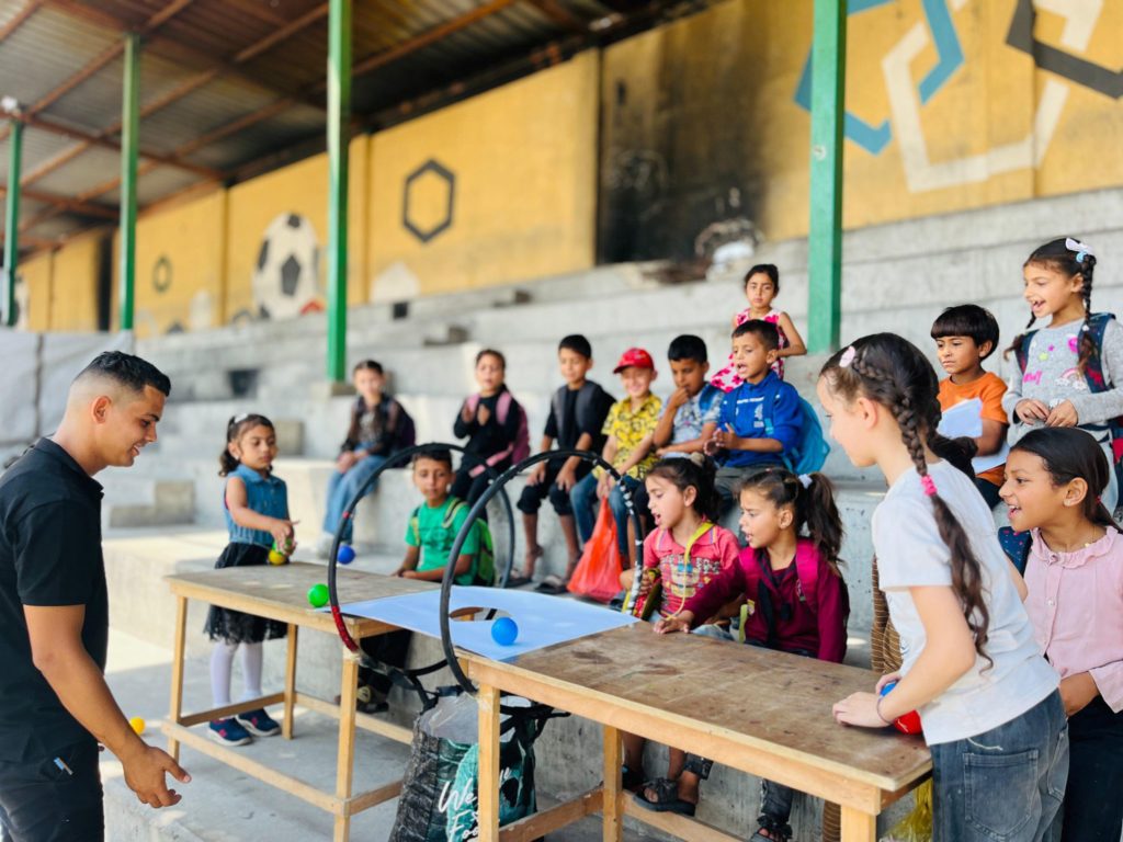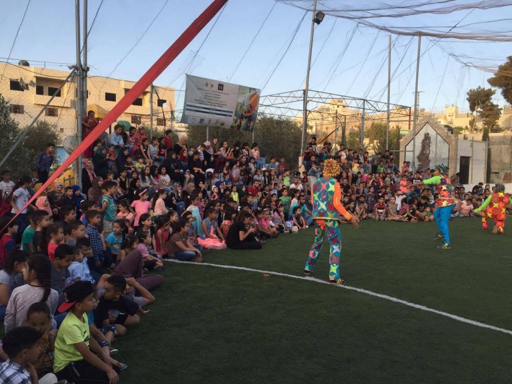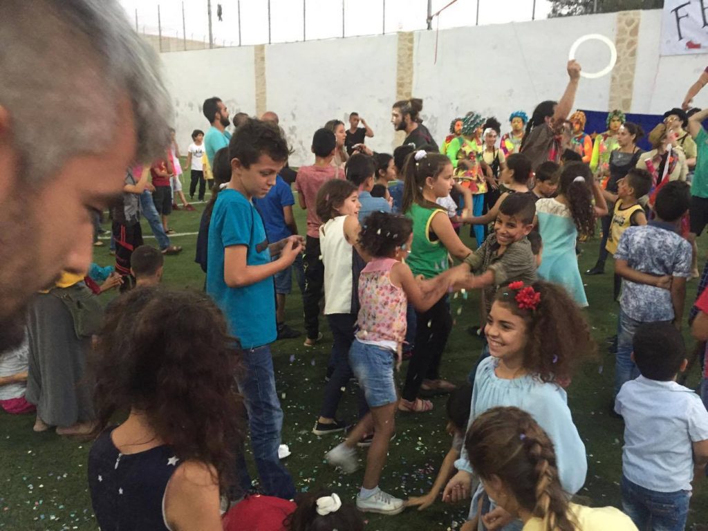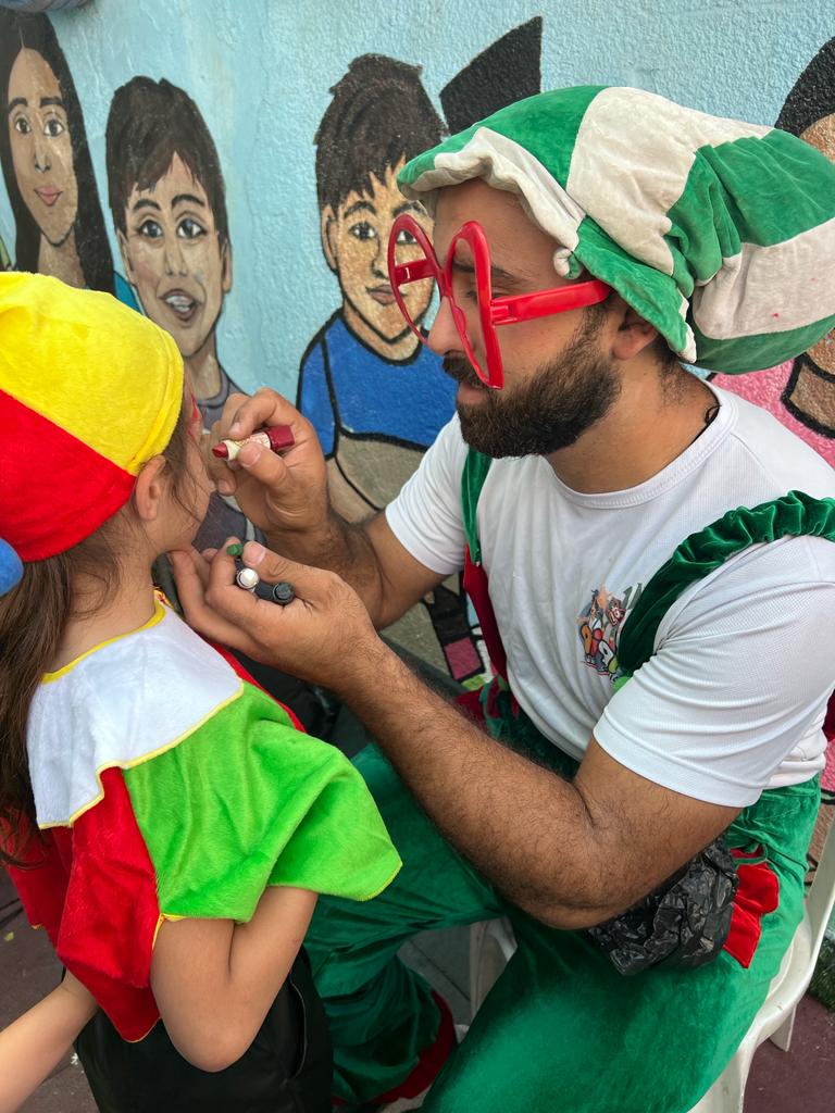 Playgrounds for Palestine teamed up with Pallasos en Rebeldía (Clowns in Rebellion), who volunteered through Lajee Center, to send them across the West Bank portion of Palestine to host day long events and acrobatics workshops for local children at our playgrounds.