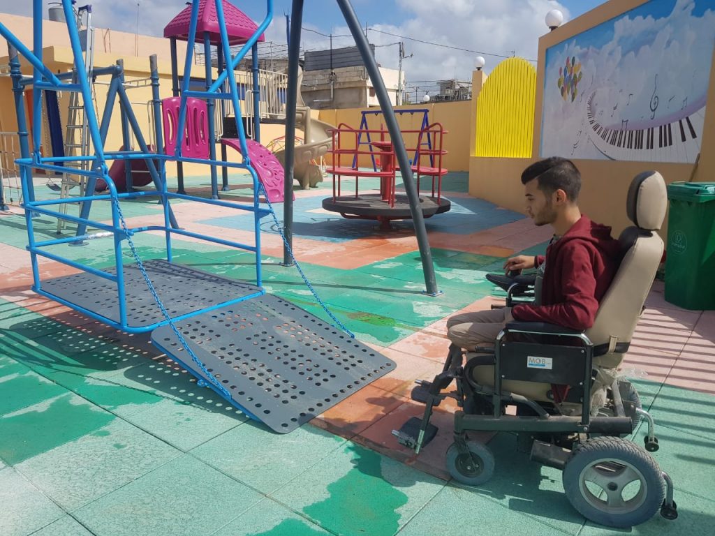 The most recent projects to improve the Rashidieh Playground include the addition of accessible equipment such as the accessible swing to serve children with disabilities.