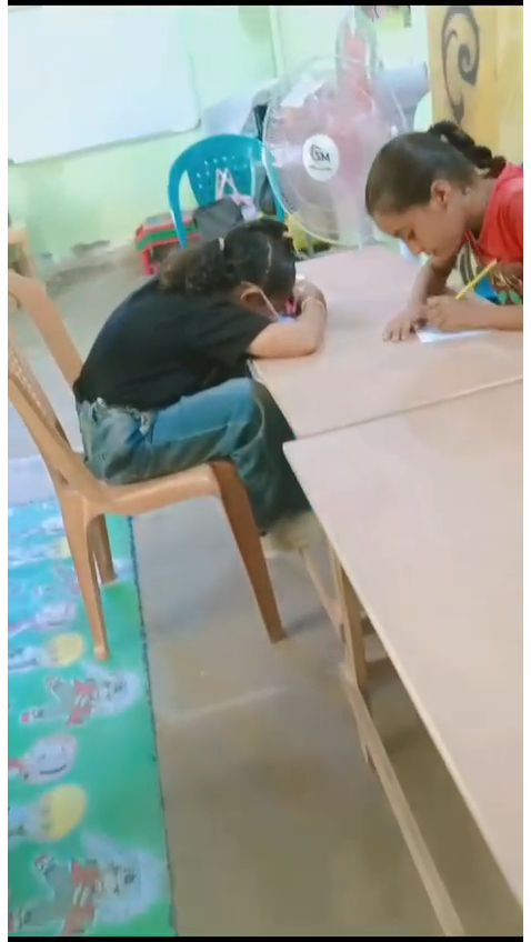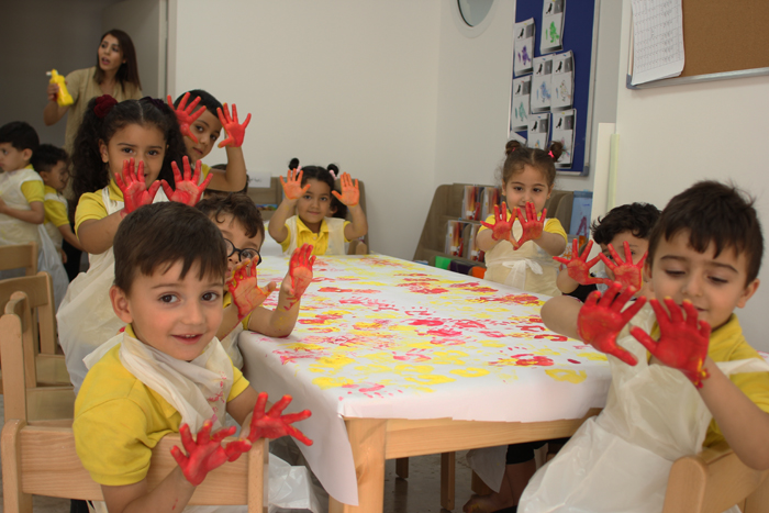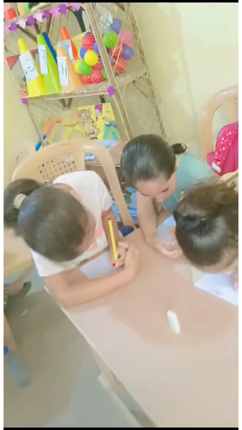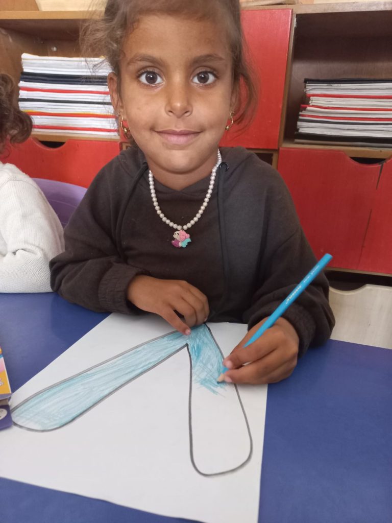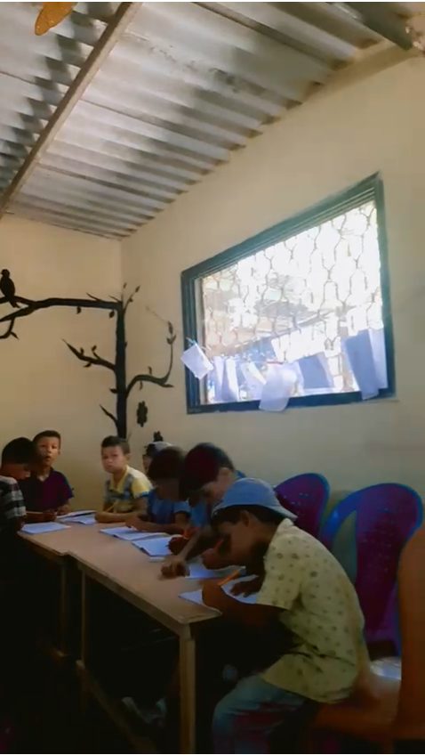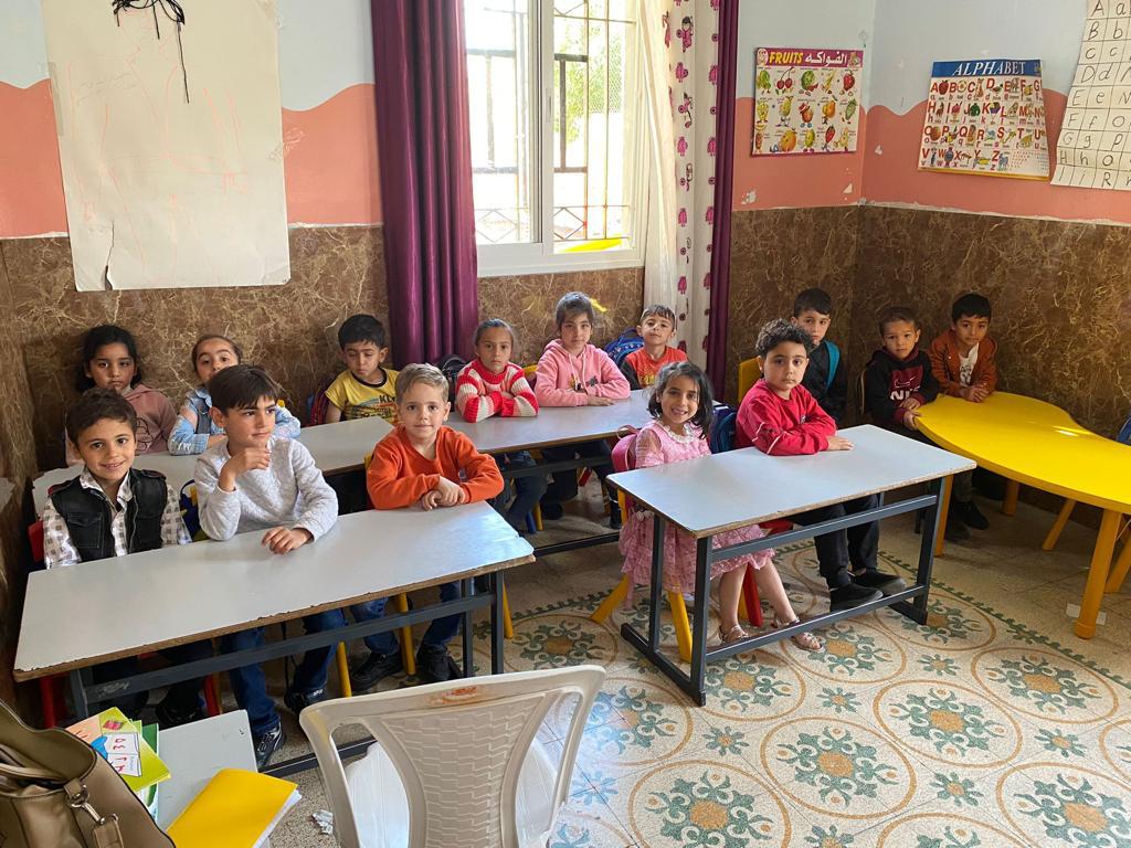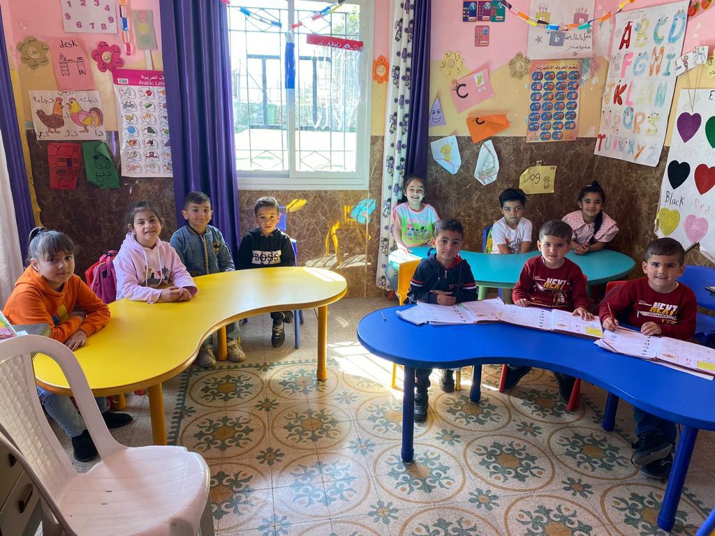 The KG accommodates up to a 180 children, has 10 teachers of which one of them is the headmistress as well. The KG is made up of two separate houses situated next to each other. The first occupies the ground floor of a two store house, has 6 classes, canteen and kitchenette, an admin room and 2 toilettes located outside the building, the size of the building is 180Km2. The second part of the KG is located in a 50Km2 house made up of 2 classrooms and one toilette.