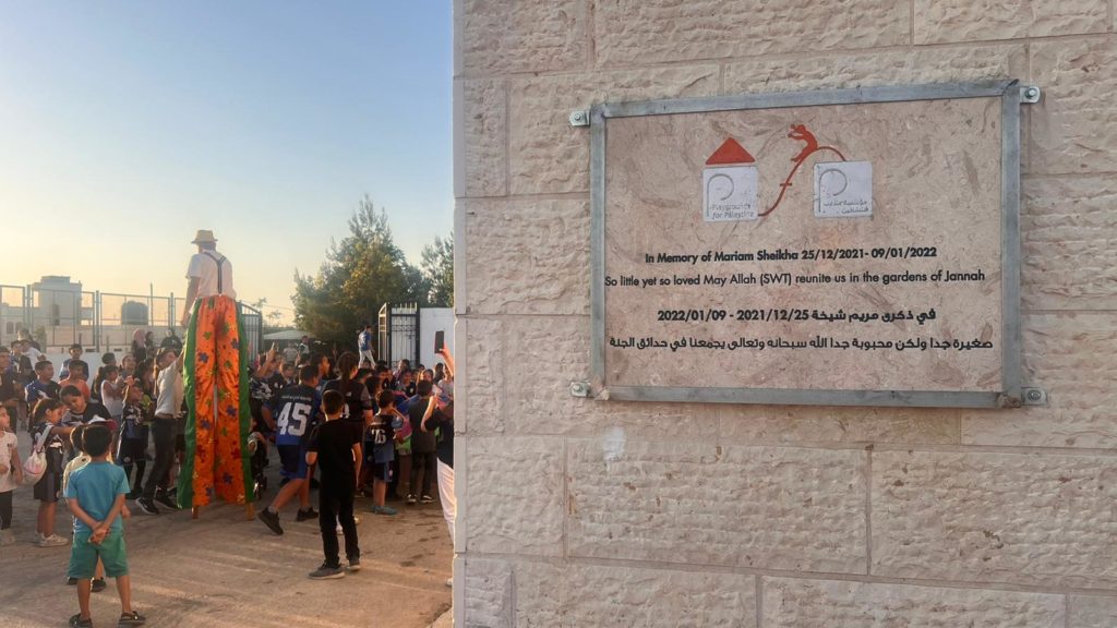 This playground was built in loving memory of Mariam Sheikha (12.25.2021 — 01.09.2022) by her parents Sabah Yusuf and Mudassir Sheikha. The playground serves four adjacent villages, including Birzeit, Cobar, AbuQash, and Abushkhedim. The approximate number of children who use the playground is 4,300 ranging in ages from toddlers to 15 years.