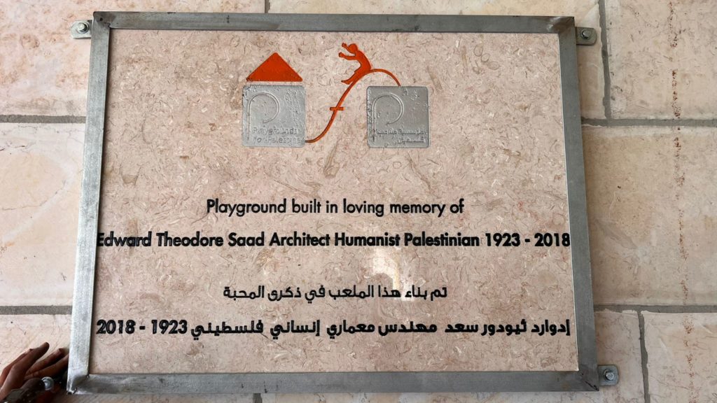 This playground is a gift in memory from the family of Edward Theodore Saad. Architect. Humanist. Palestinian.