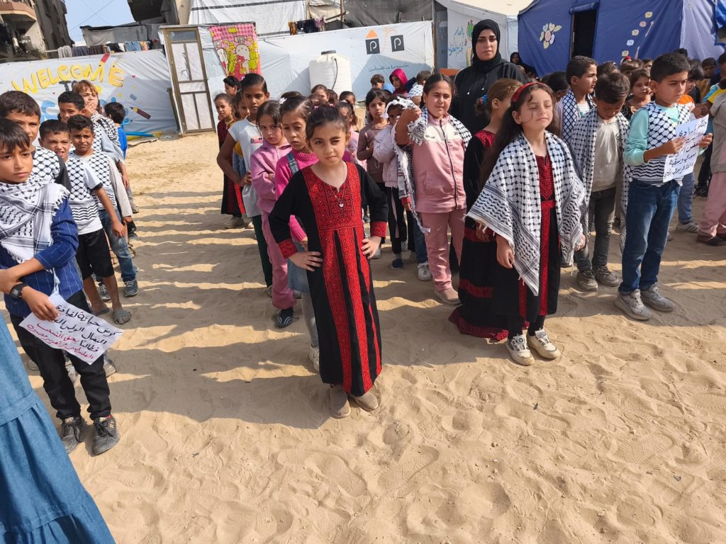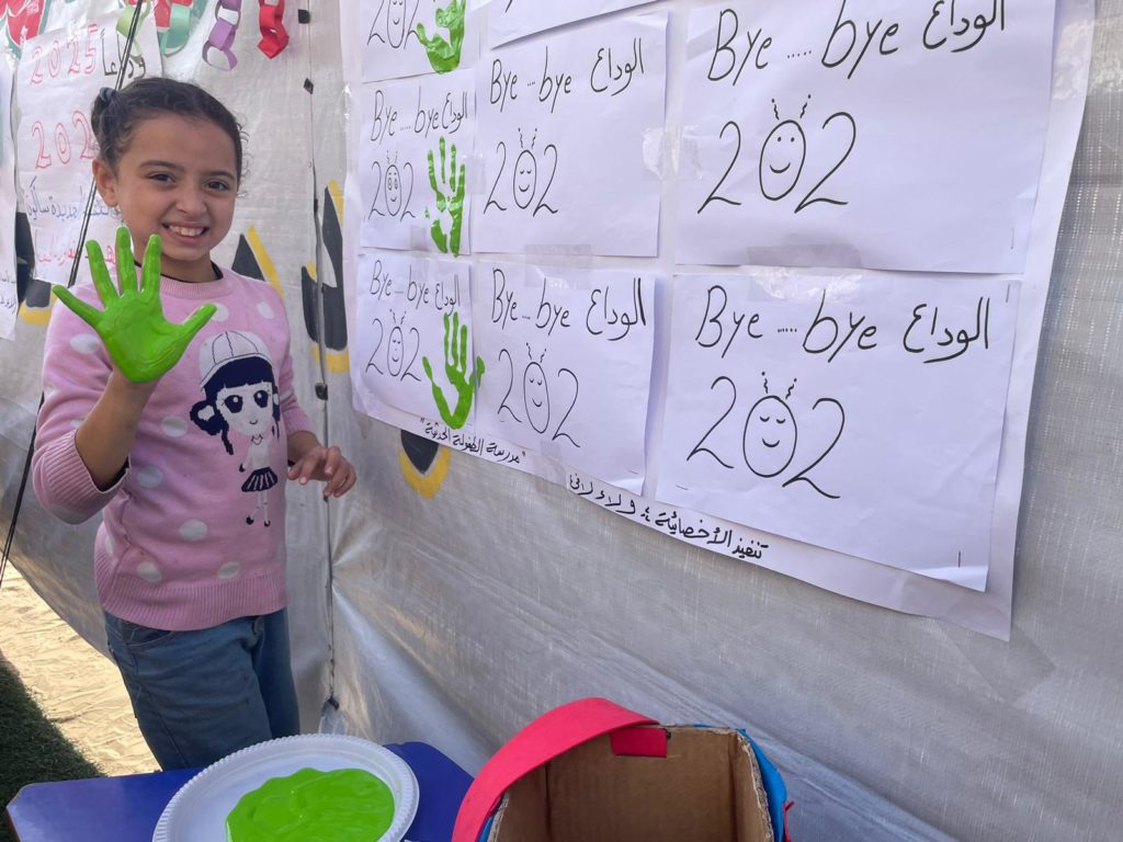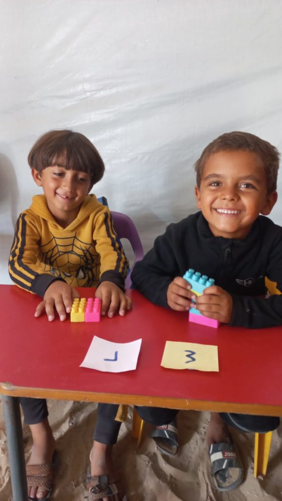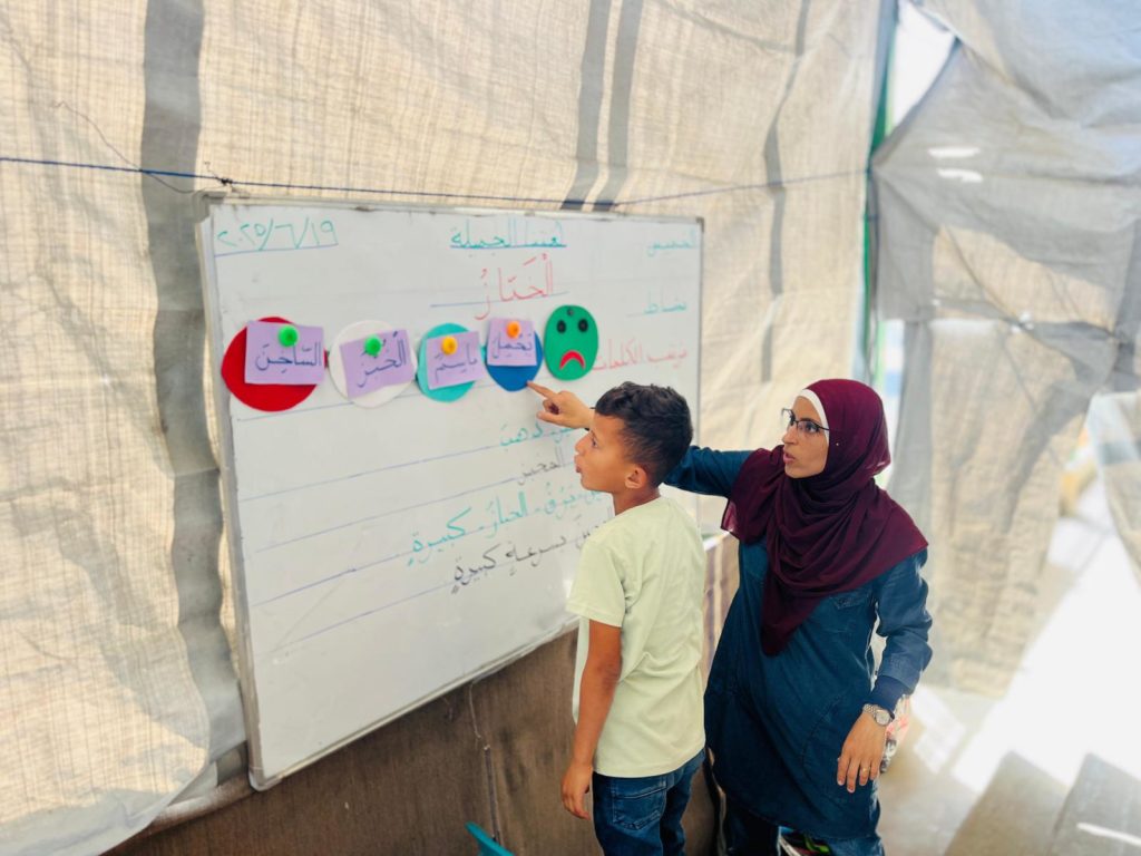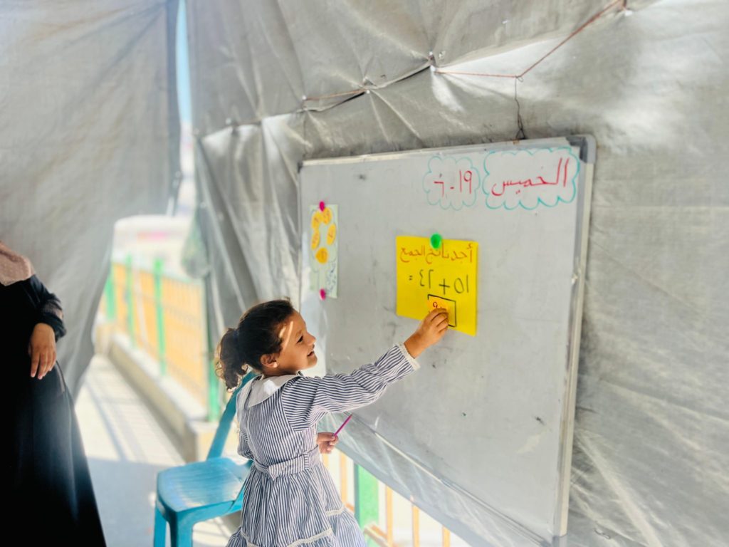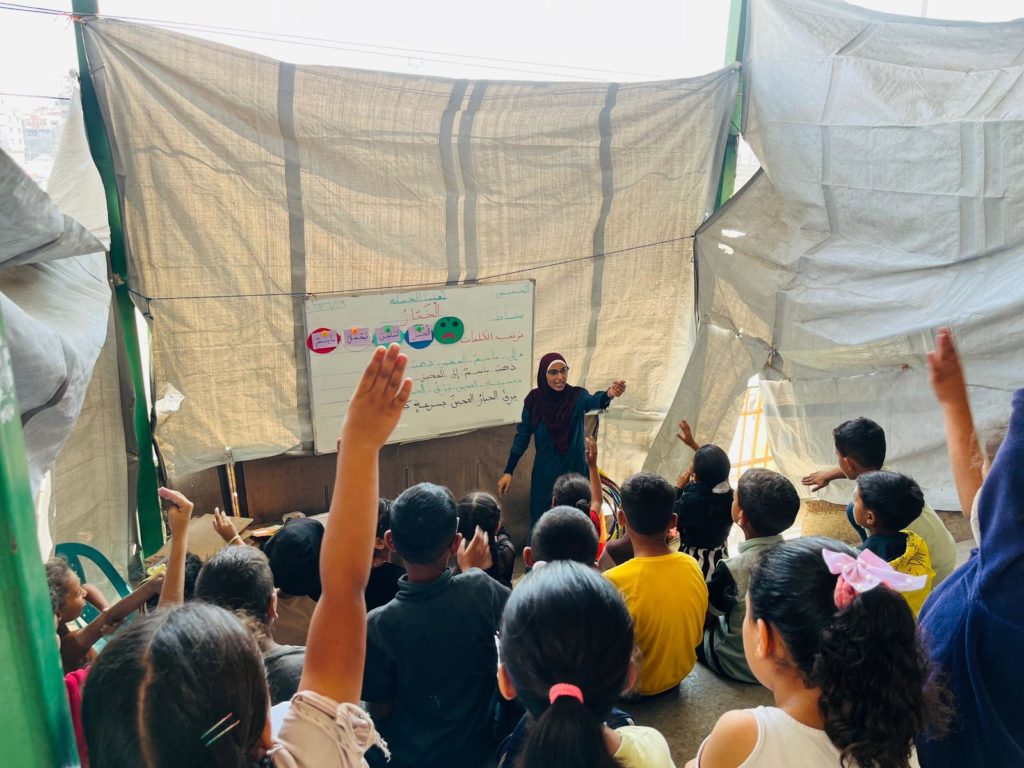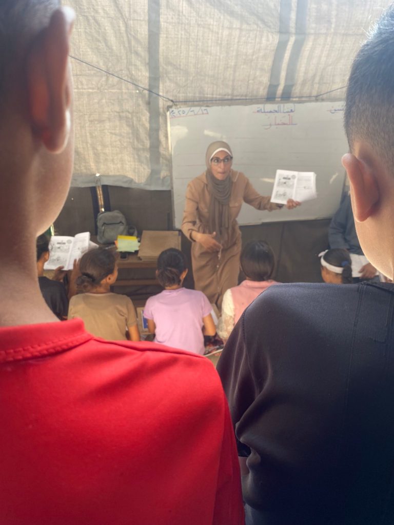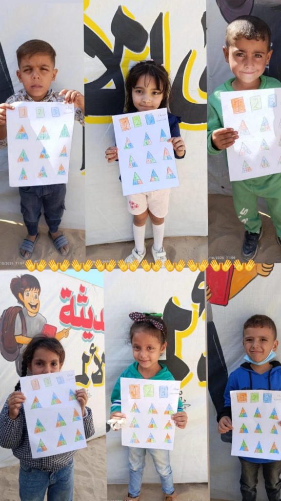 The Modern Childhood School is PfP’s second school in Gaza, serving approximately 400 students from pre-K to 5th grade. This was a fully operational school prior to the genocide, but was destroyed by Israeli bombing. The principal, Gehan, along with existing teachers at the school and with funding from PfP, re-established the school in Deir el Balah.