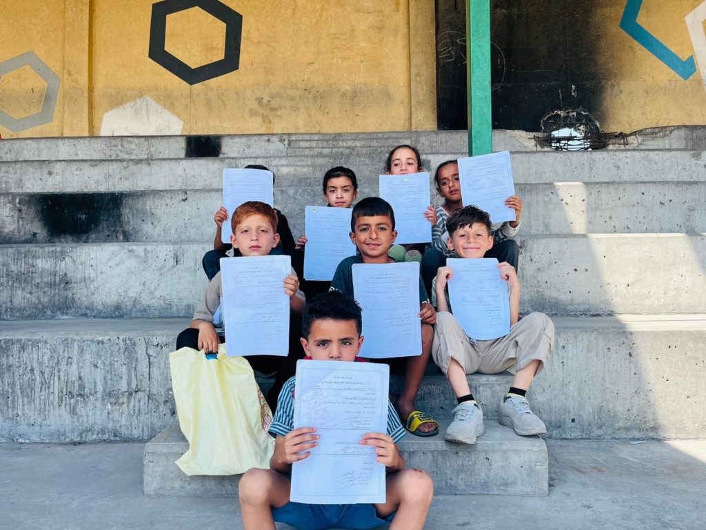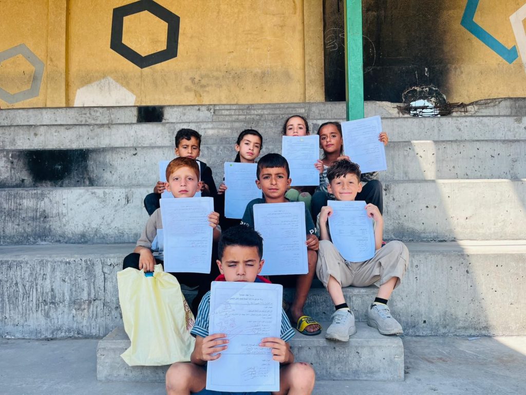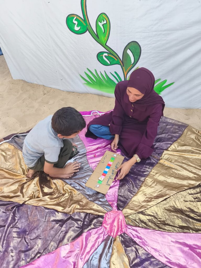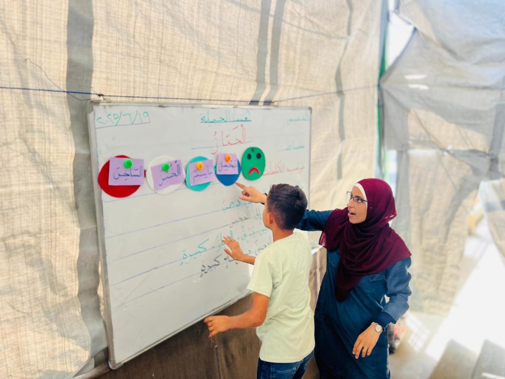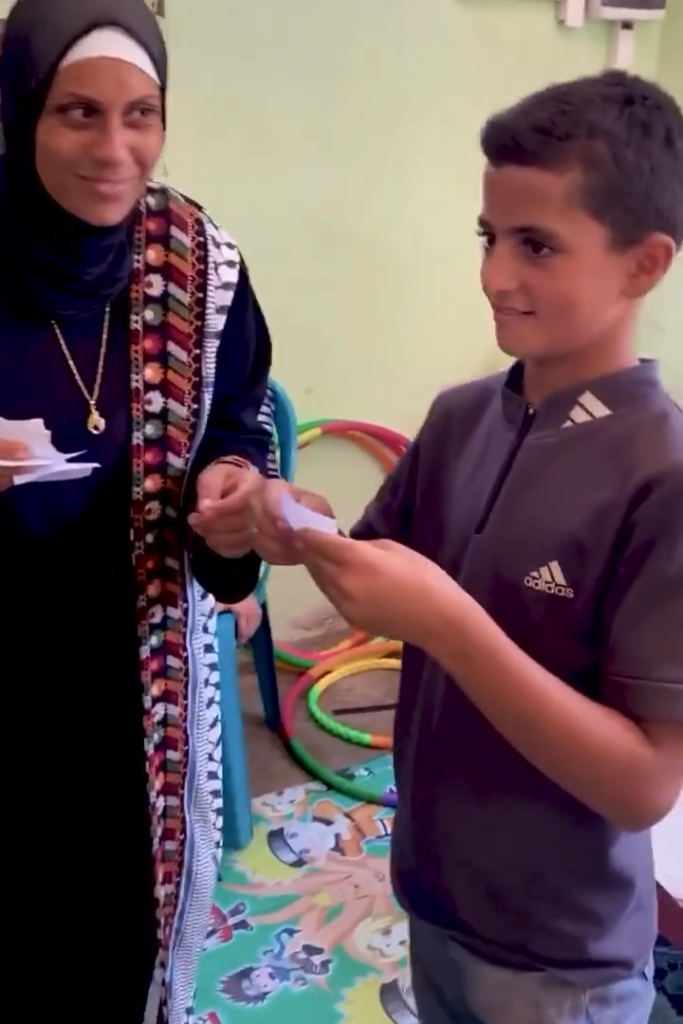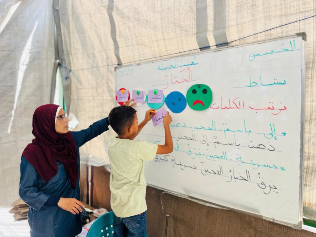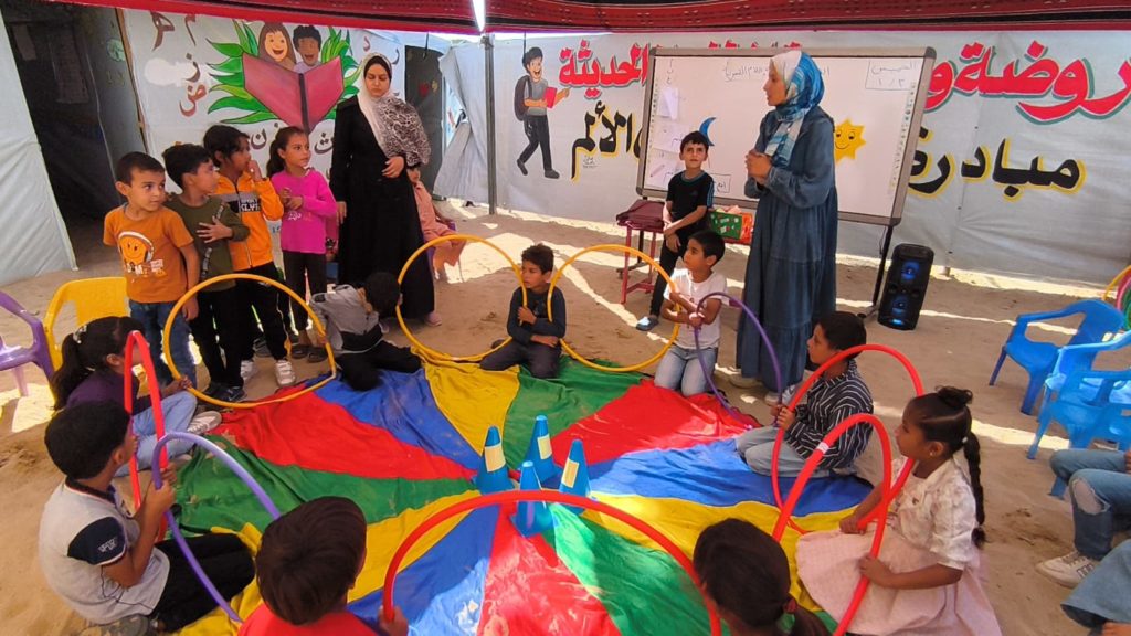 The Modern Childhood School is PfP’s second school in Gaza, serving approximately 400 students from pre-K to 5th grade. This was a fully operational school prior to the genocide, but was destroyed by Israeli bombing. The principal, Gehan, along with existing teachers at the school and with funding from PfP, re-established the school in Deir el Balah.