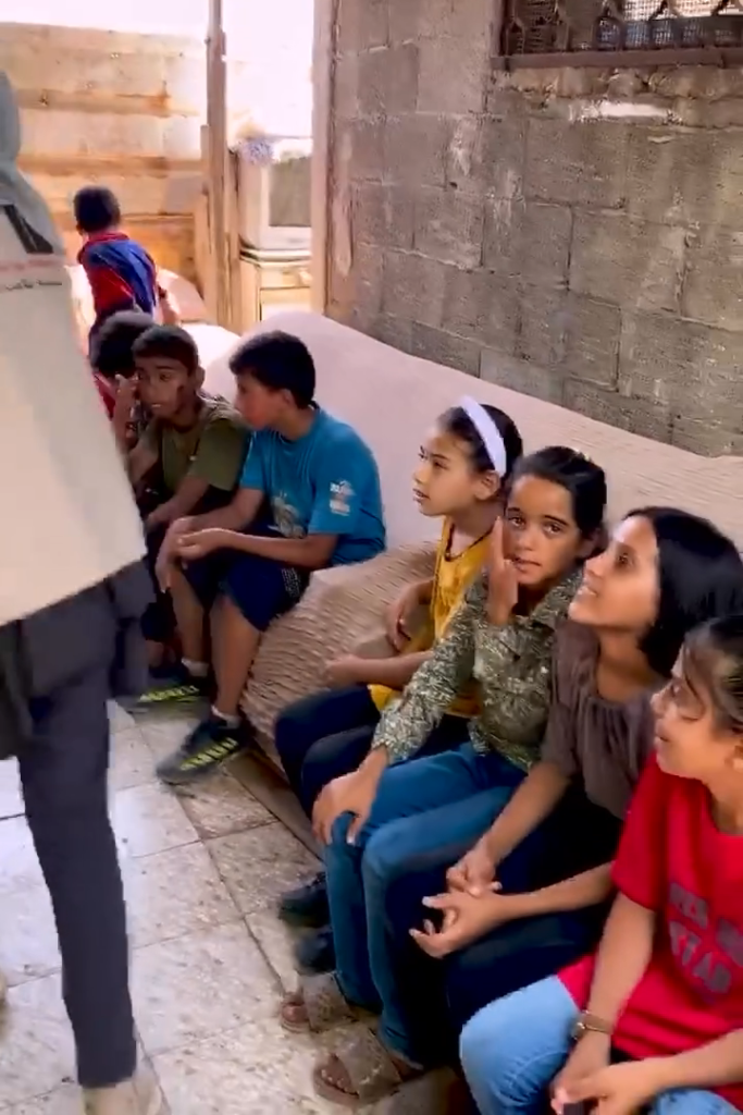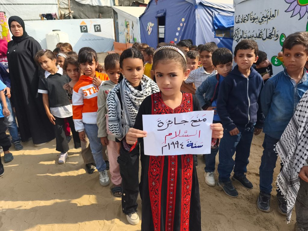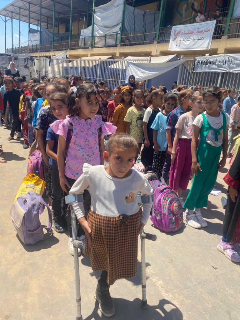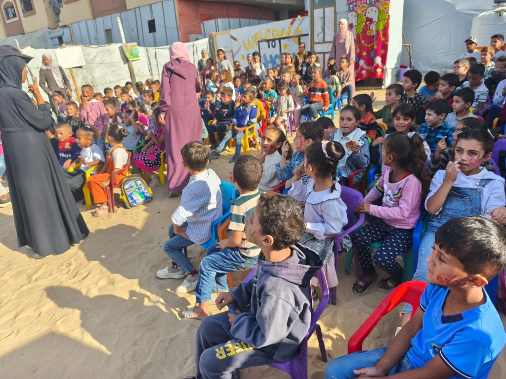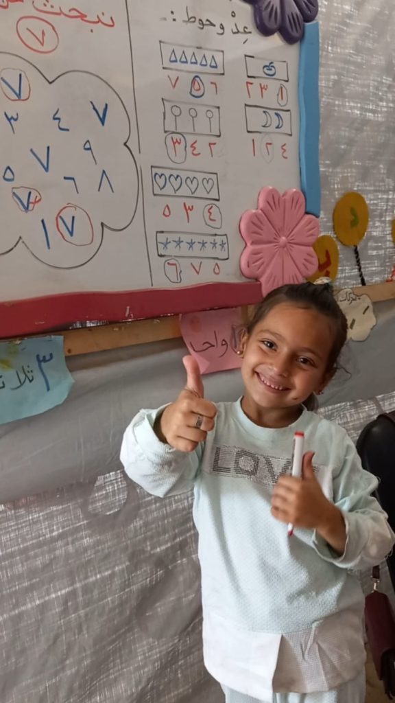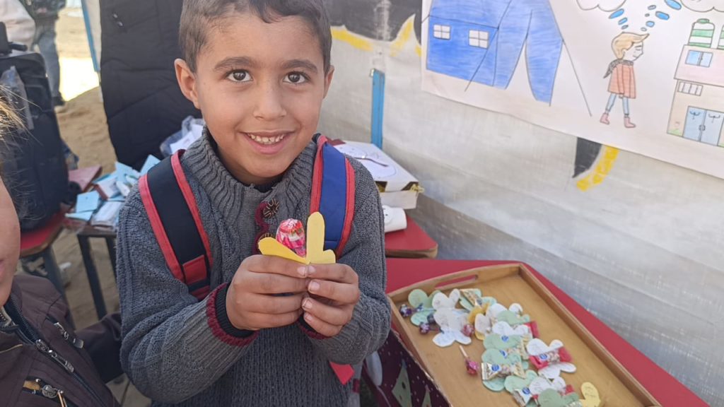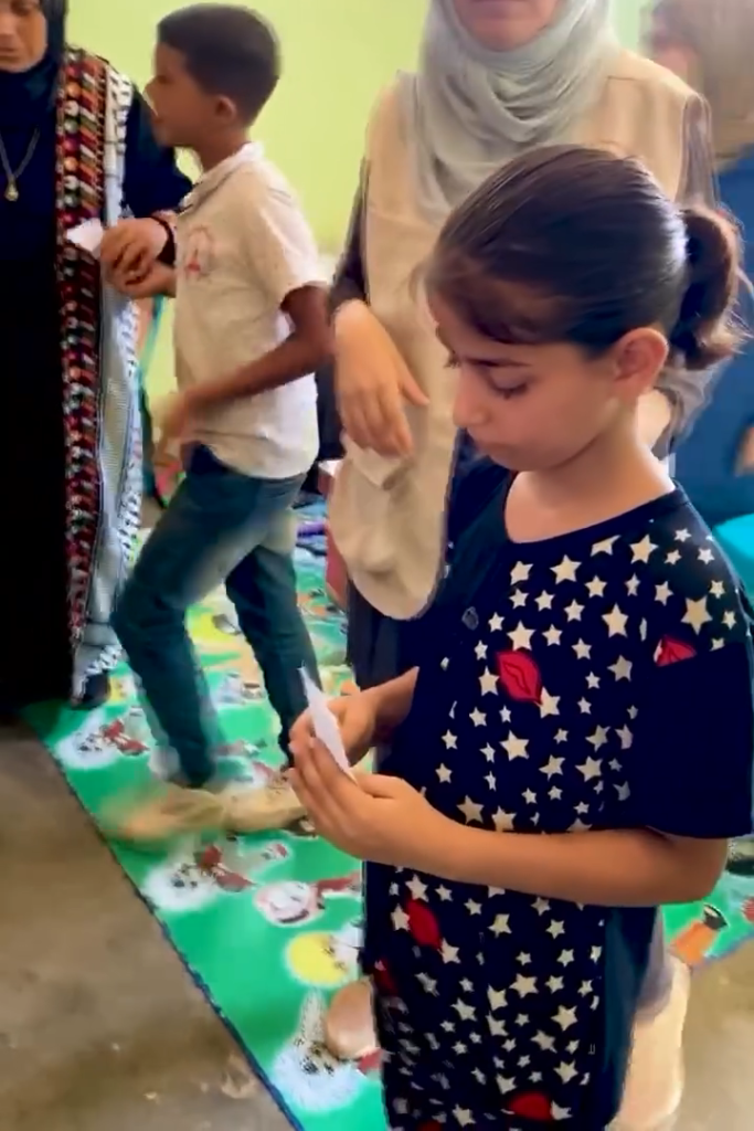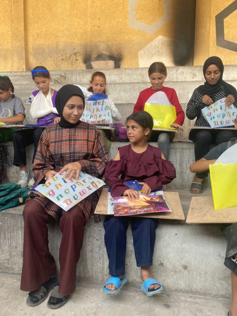 The Modern Childhood School is PfP’s second school in Gaza, serving approximately 400 students from pre-K to 5th grade. This was a fully operational school prior to the genocide, but was destroyed by Israeli bombing. The principal, Gehan, along with existing teachers at the school and with funding from PfP, re-established the school in Deir el Balah.
