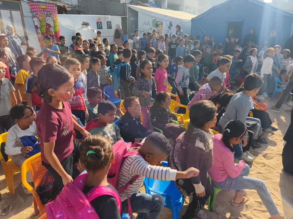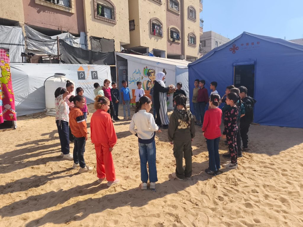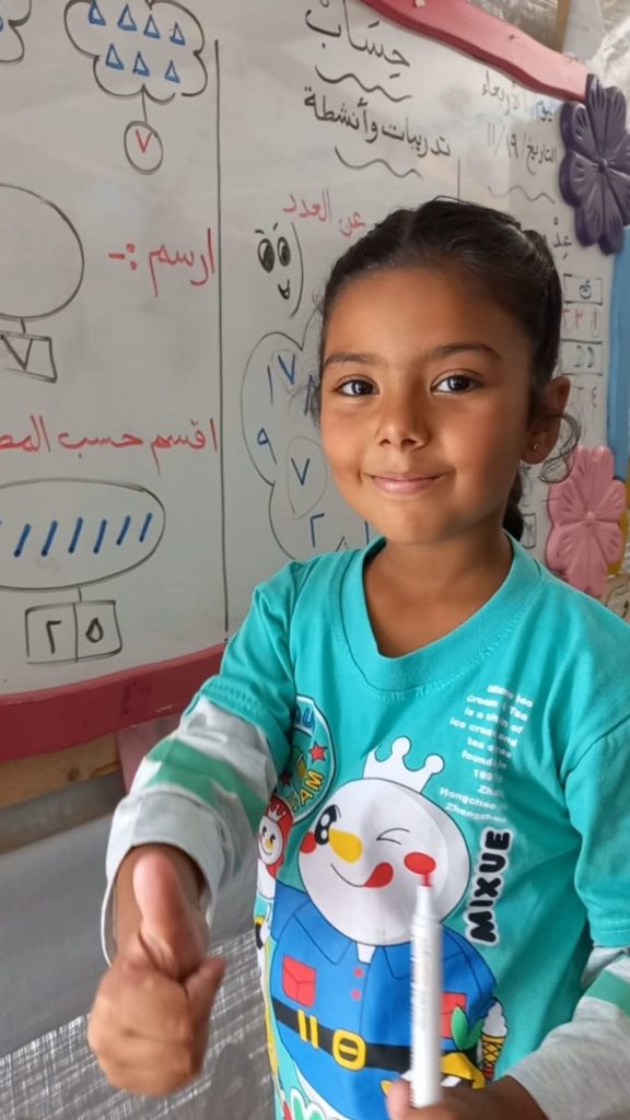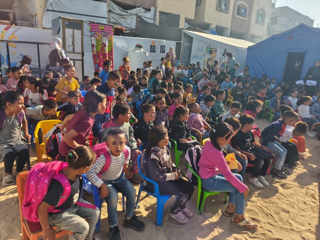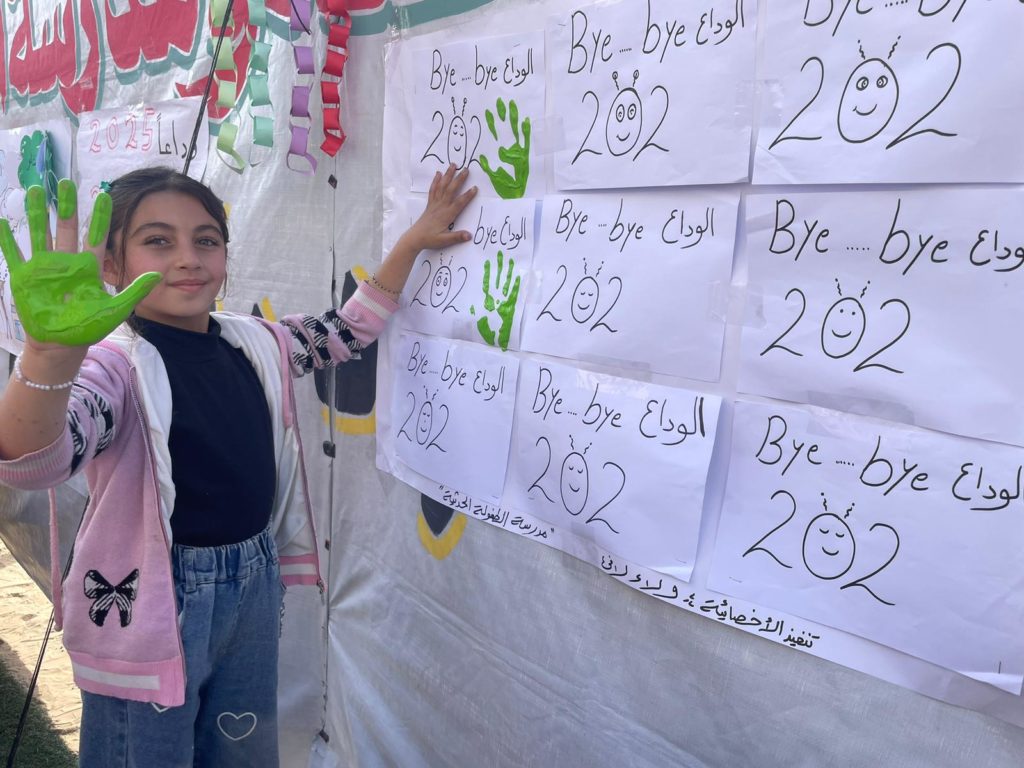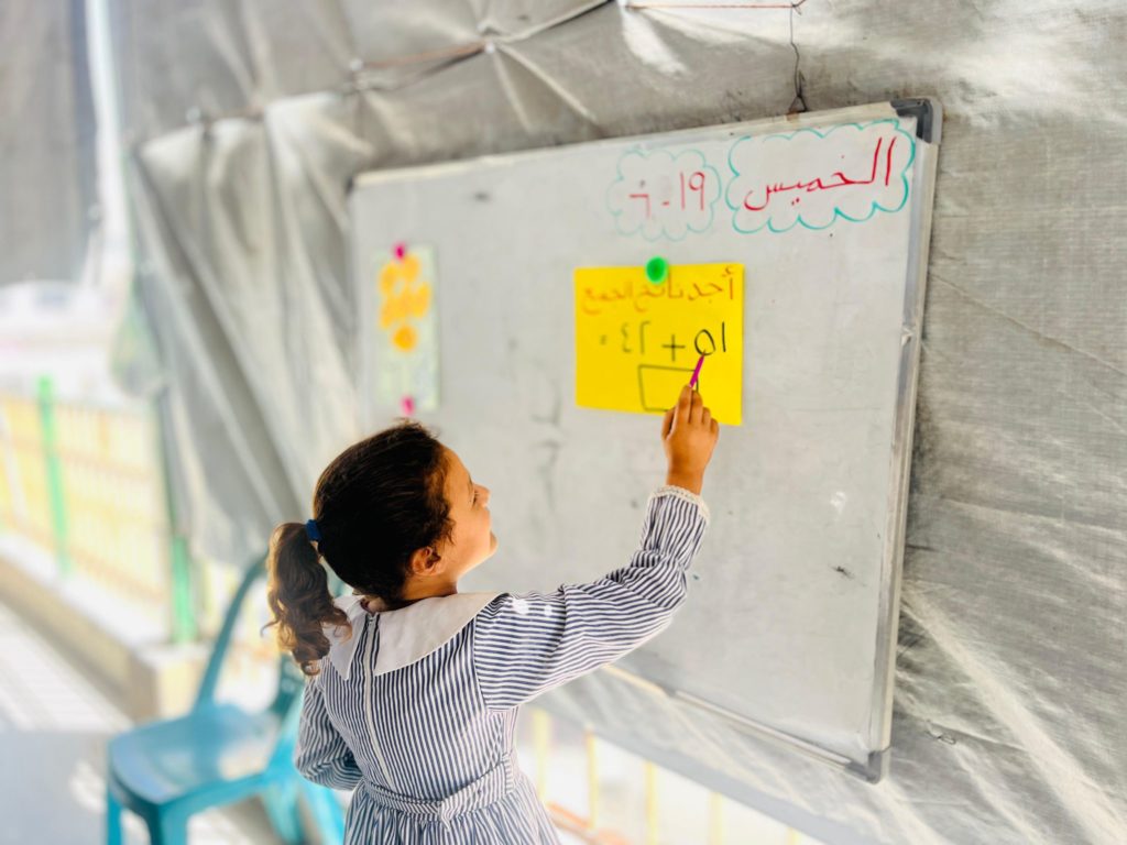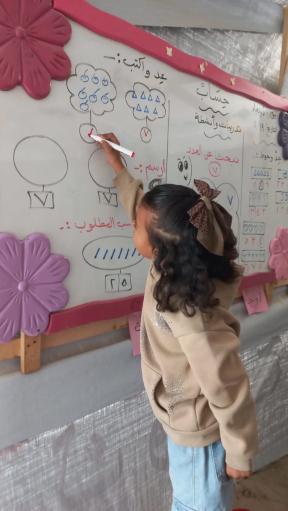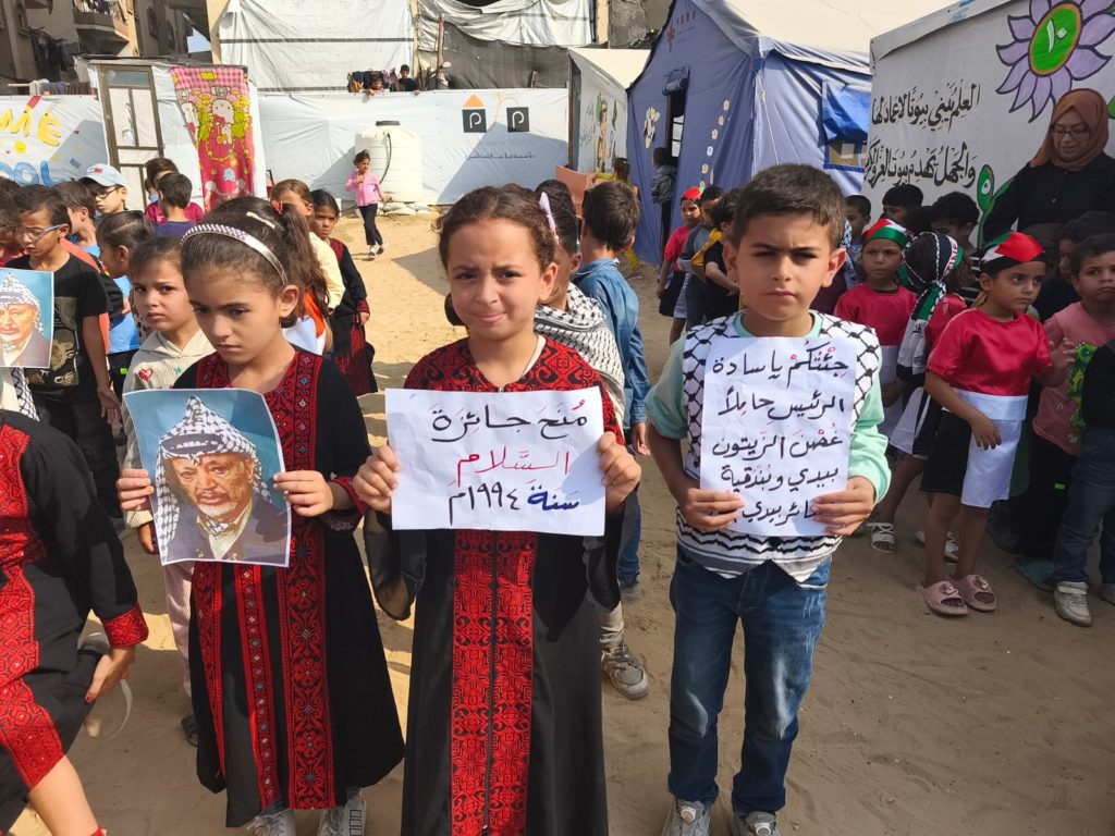 The Modern Childhood School is PfP’s second school in Gaza, serving approximately 400 students from pre-K to 5th grade. This was a fully operational school prior to the genocide, but was destroyed by Israeli bombing. The principal, Gehan, along with existing teachers at the school and with funding from PfP, re-established the school in Deir el Balah.