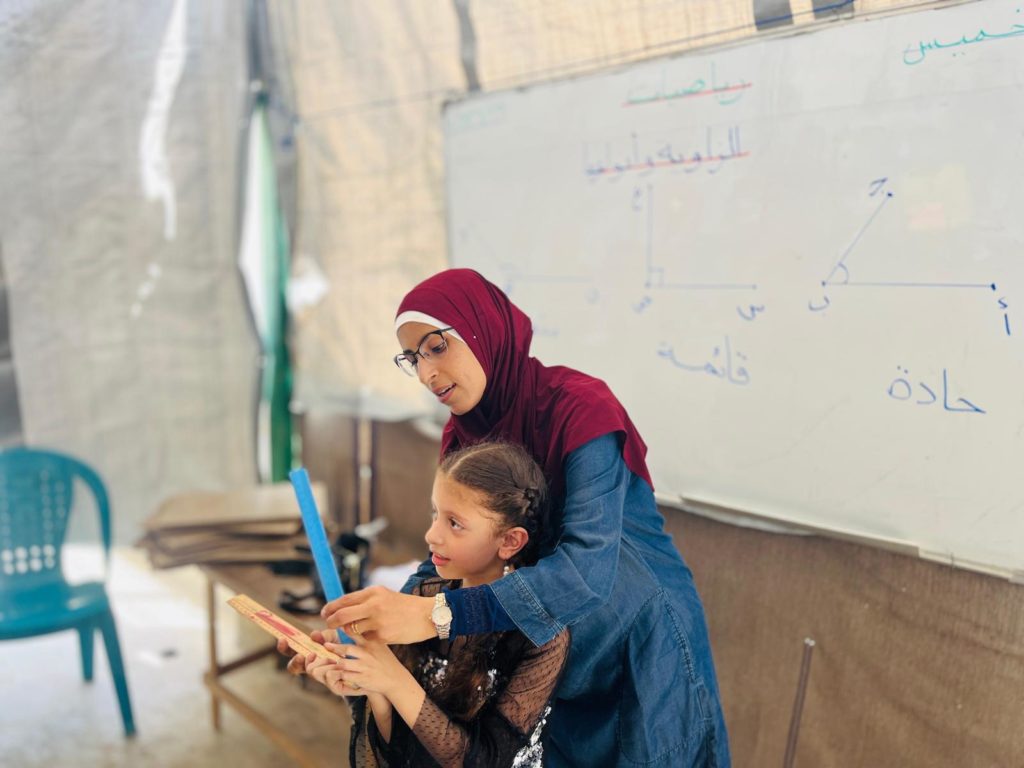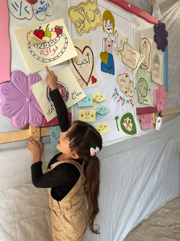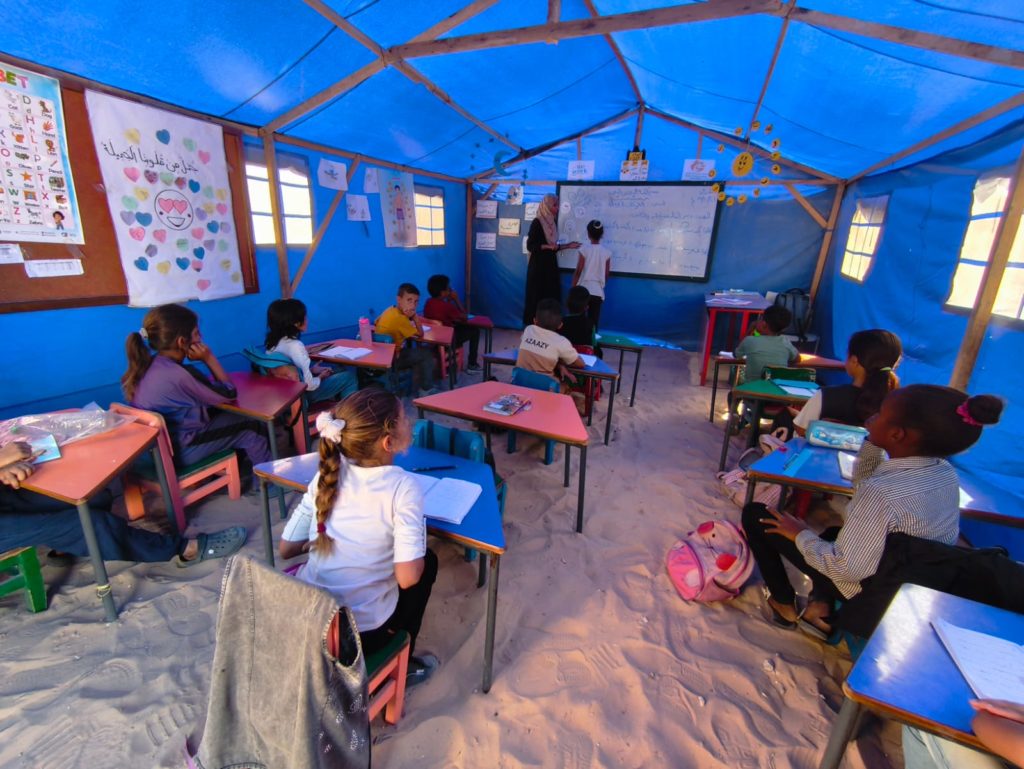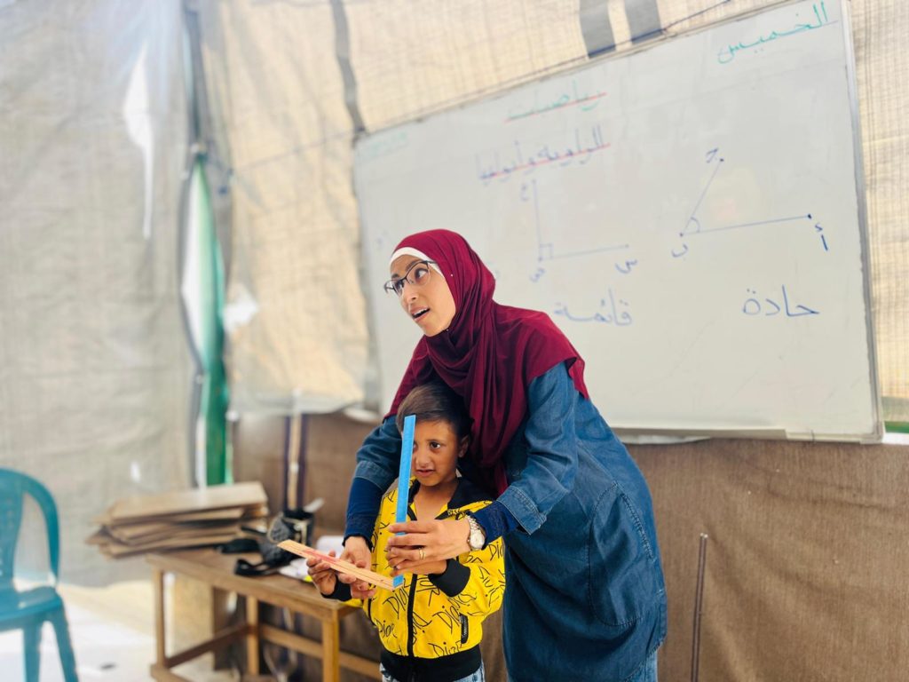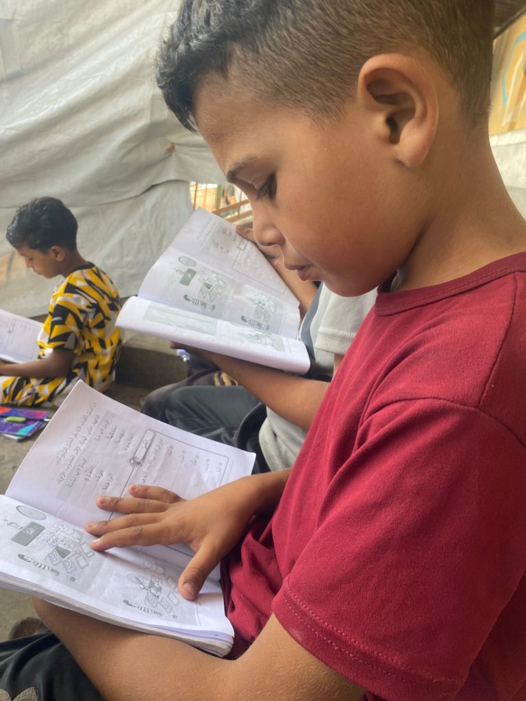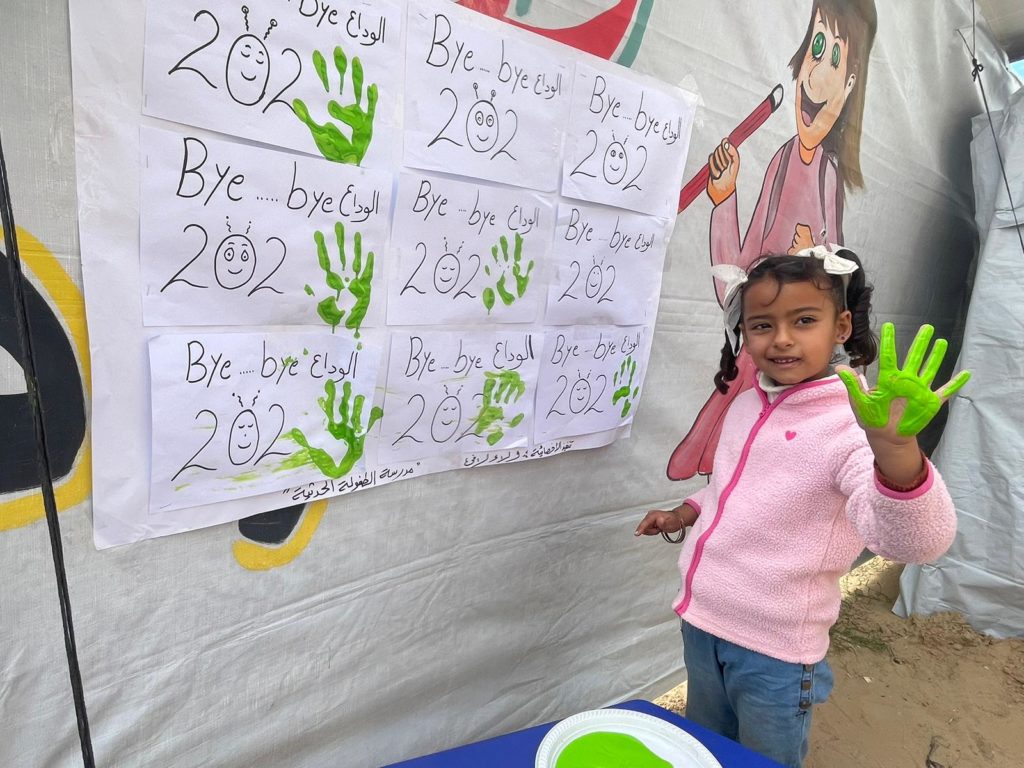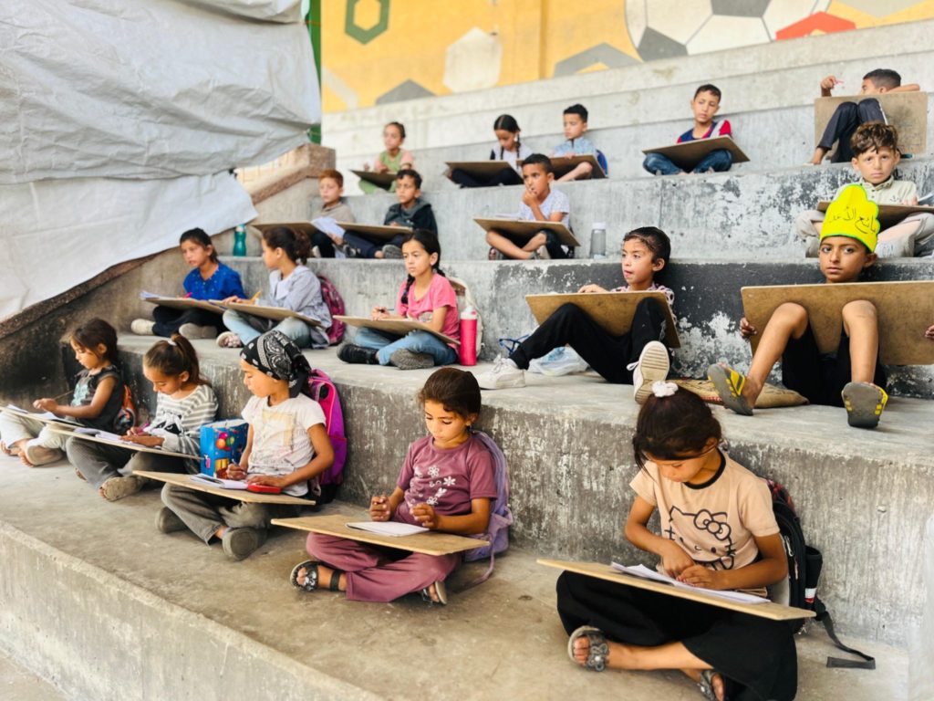 The Modern Childhood School is PfP’s second school in Gaza, serving approximately 400 students from pre-K to 5th grade. This was a fully operational school prior to the genocide, but was destroyed by Israeli bombing. The principal, Gehan, along with existing teachers at the school and with funding from PfP, re-established the school in Deir el Balah.