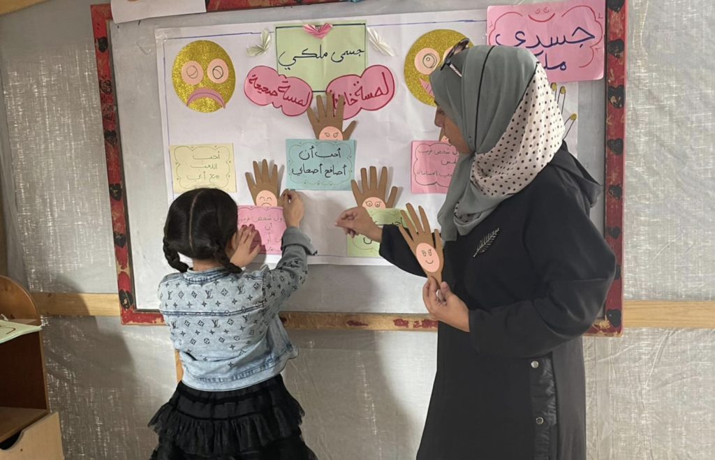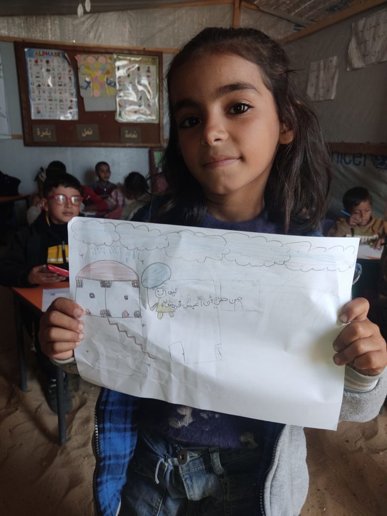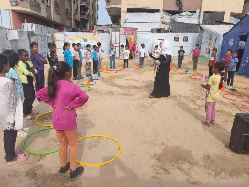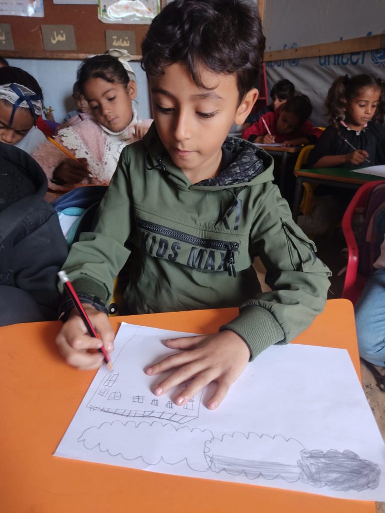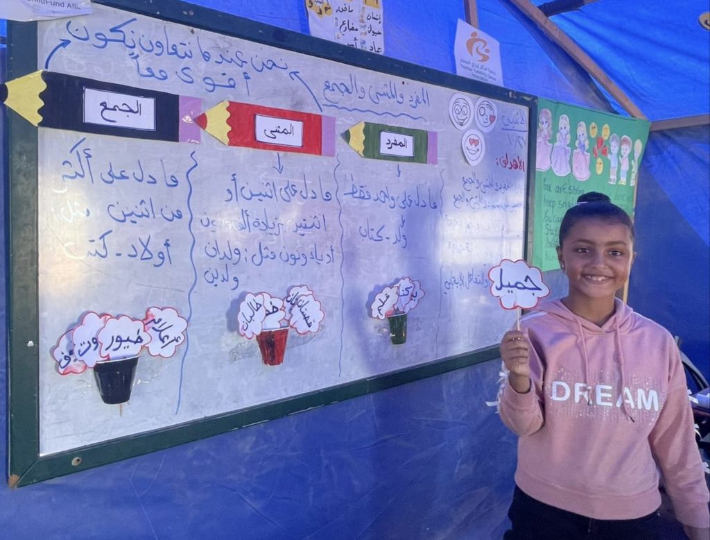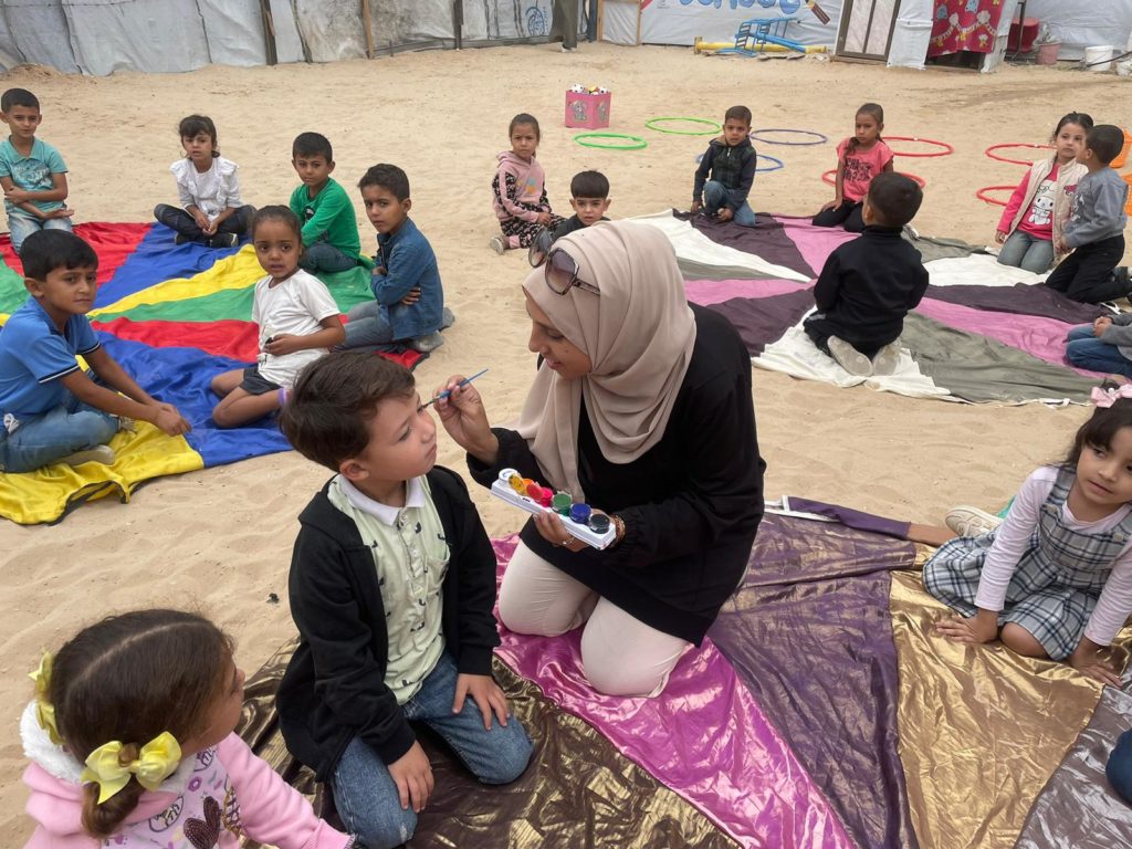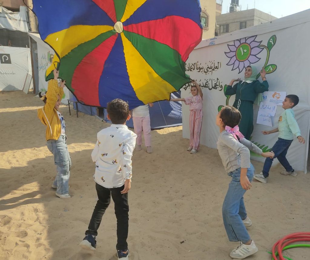 The Modern Childhood School is PfP’s second school in Gaza, serving approximately 400 students from pre-K to 5th grade. This was a fully operational school prior to the genocide, but was destroyed by Israeli bombing. The principal, Gehan, along with existing teachers at the school and with funding from PfP, re-established the school in Deir el Balah.