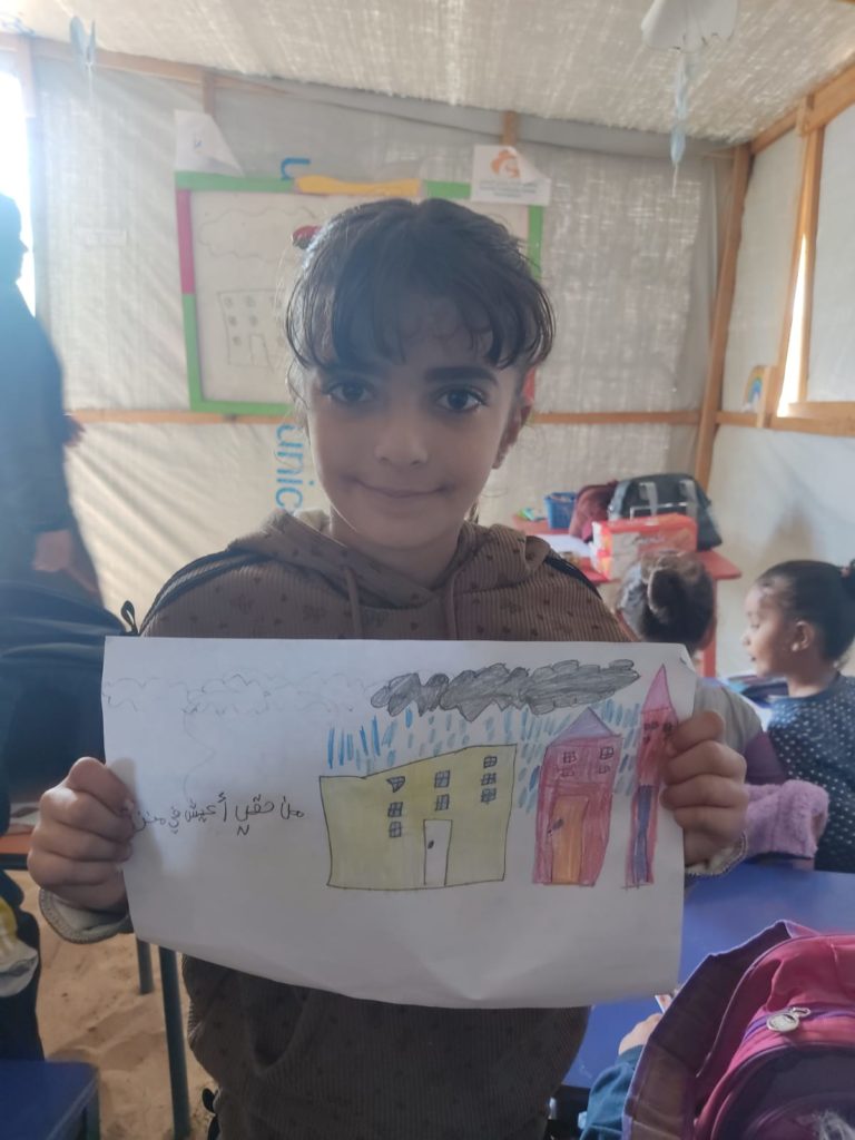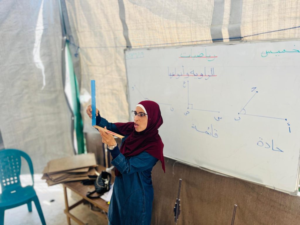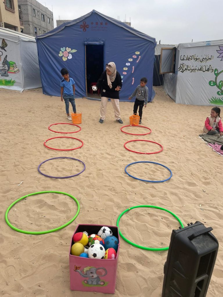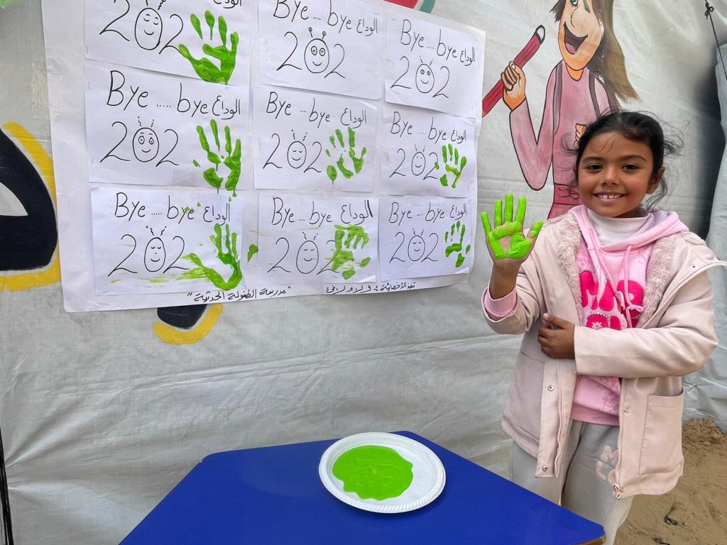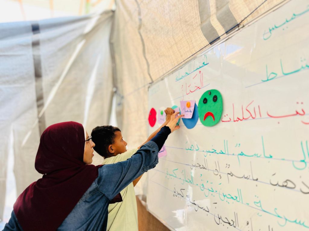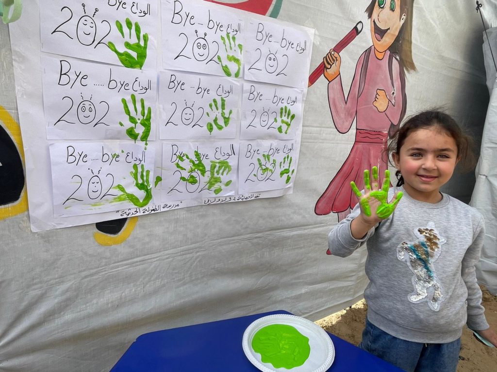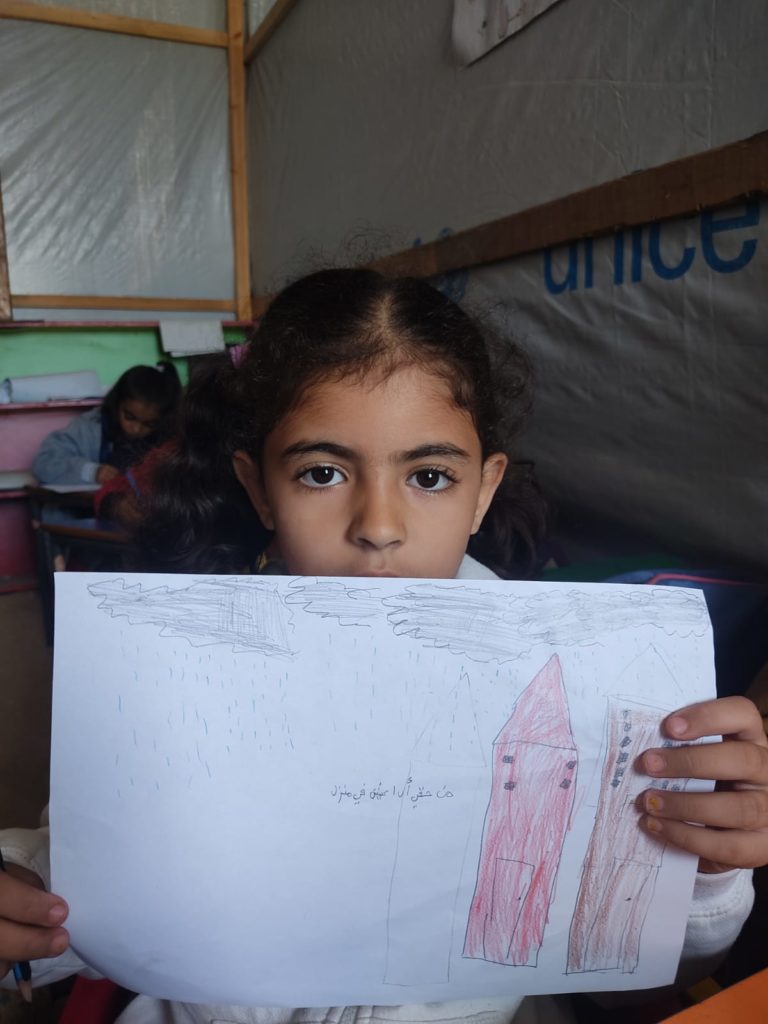 The Modern Childhood School is PfP’s second school in Gaza, serving approximately 400 students from pre-K to 5th grade. This was a fully operational school prior to the genocide, but was destroyed by Israeli bombing. The principal, Gehan, along with existing teachers at the school and with funding from PfP, re-established the school in Deir el Balah.