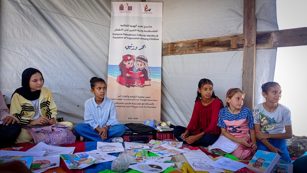 This is an ongoing project since May 2024, and is implemented in collaboration with the Culture and Free Thought Association (CFTA).  It aims to promote children’s engagement with Palestinian cultural identity through a series of activities, including reading, creative writing, Dabke (traditional Palestinian dance), and artistic workshops. The initiative will provide spaces for children to connect with their heritage by reading Palestinian literature, practicing creative writing, and expressing themselves through art, including painting and using recycled materials. It will also emphasize environmental awareness while nurturing creativity, self-expression, and talent development. The project will focus on fostering a love for reading, especially among children with disabilities, and will guide them through writing, editing, and publishing their stories. Dabke classes will strengthen their cultural connection, promote teamwork, and offer an enjoyable physical activity, especially for girls who have had limited opportunities for free movement.